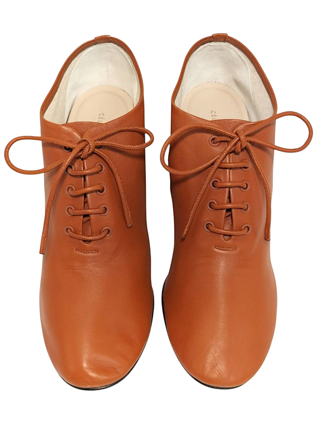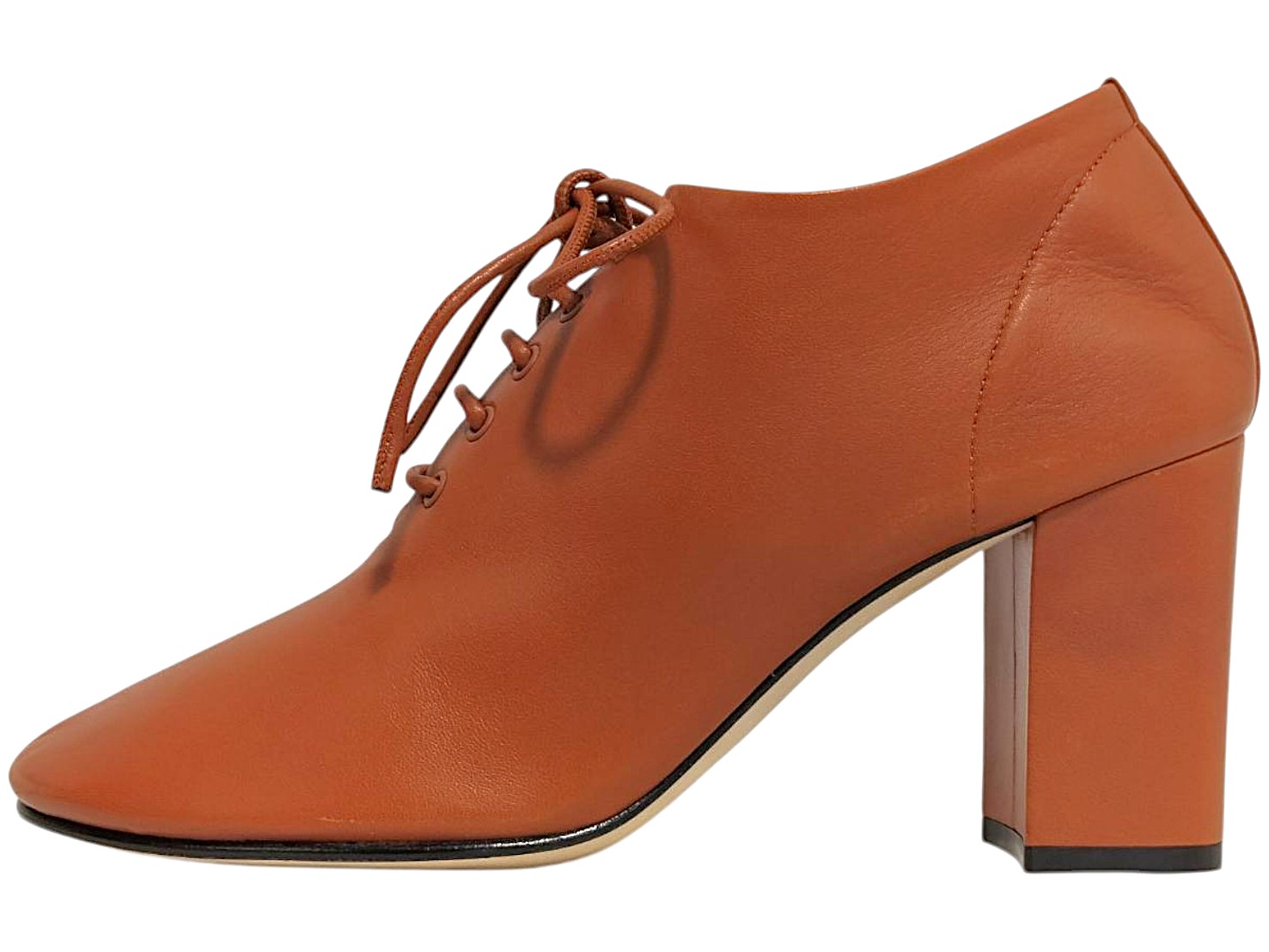 アイテム:クロスベルトストラップシューズ アイテム:ドレスシューズ 素材:レザー ヒール:8cm カラー:ブラウン系・コニャック