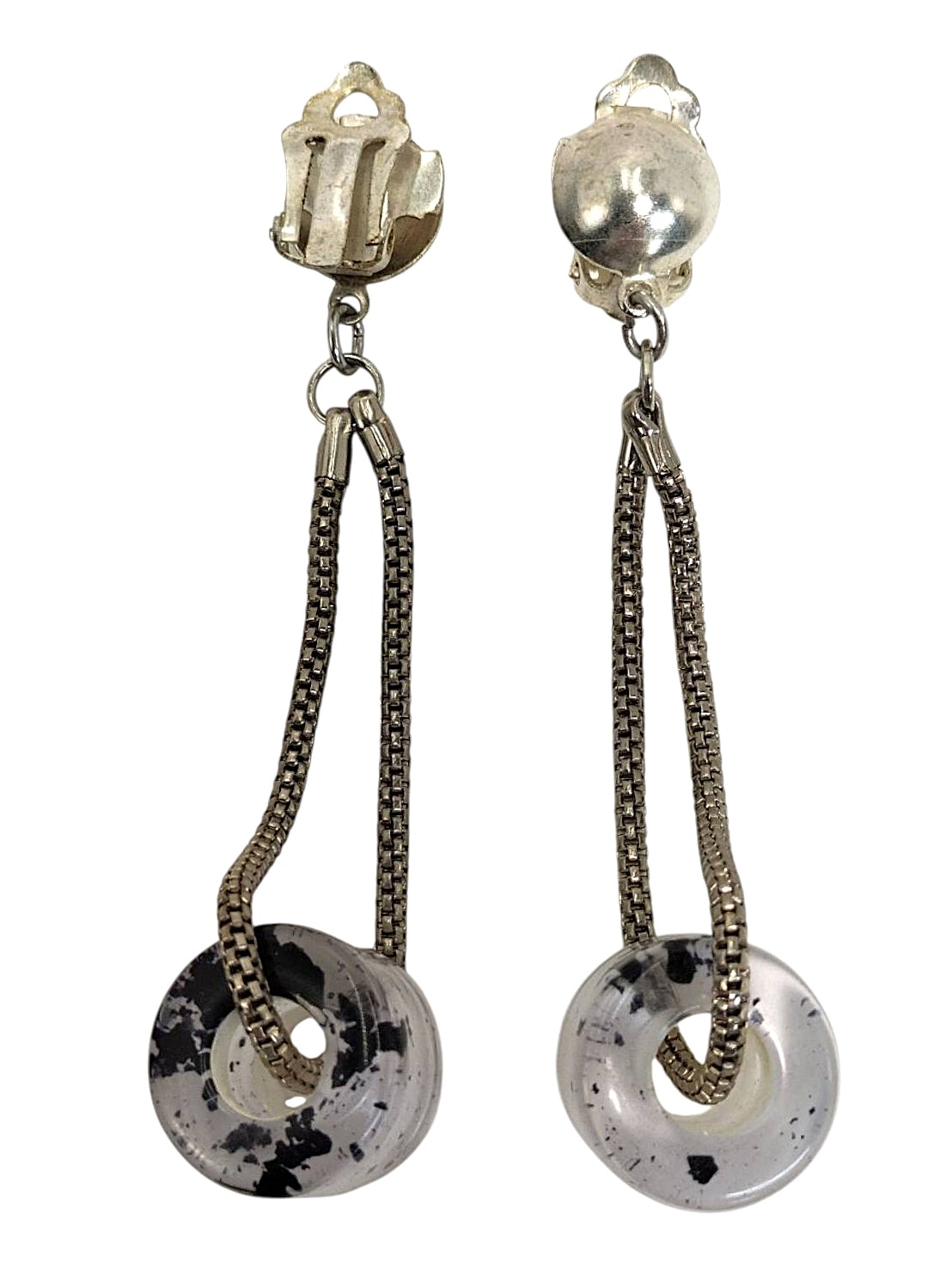 アイテム:樹脂パーツ付きデザインイヤリング 素材:メタル・樹脂パーツ カラー:シルバー・ブラック・クリア