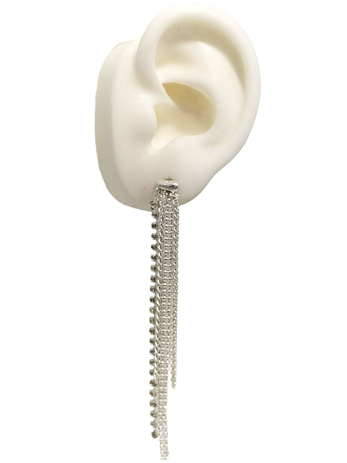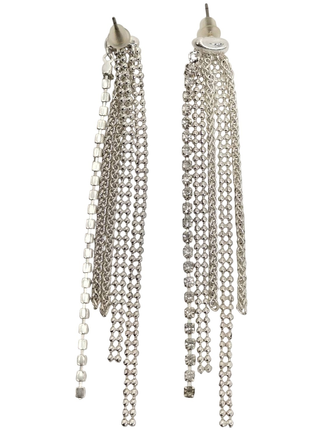 アイテム:フリンジチェーンピアス 素材:メタル・ガラス カラー:マットシルバー・クリスタル 全長:約8㎝