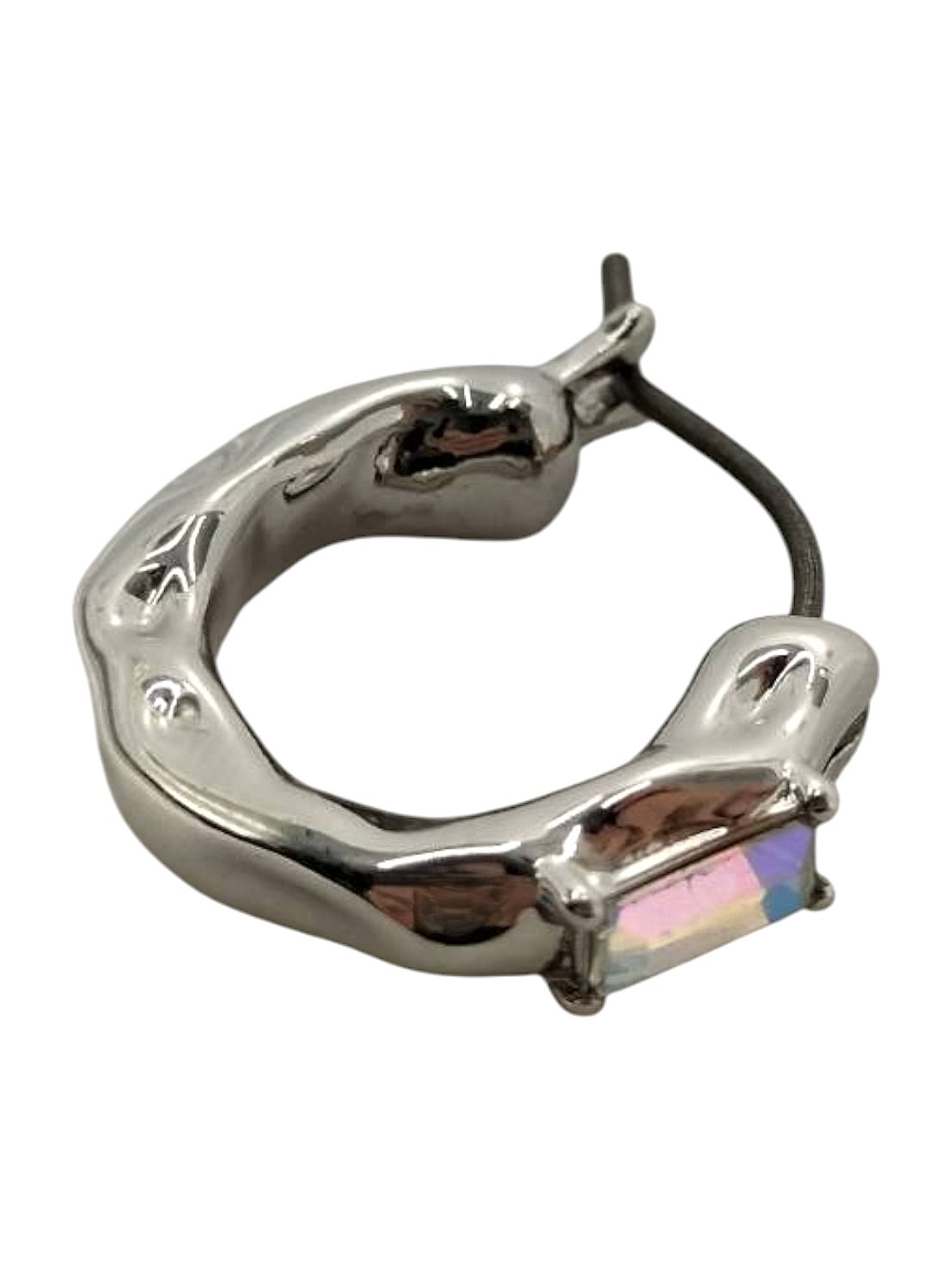 アイテム:バゲット型ストーン付き片耳ループピアス 素材:メタル・ガラス カラー:シルバー・オーロラ 全長:約2.5㎝