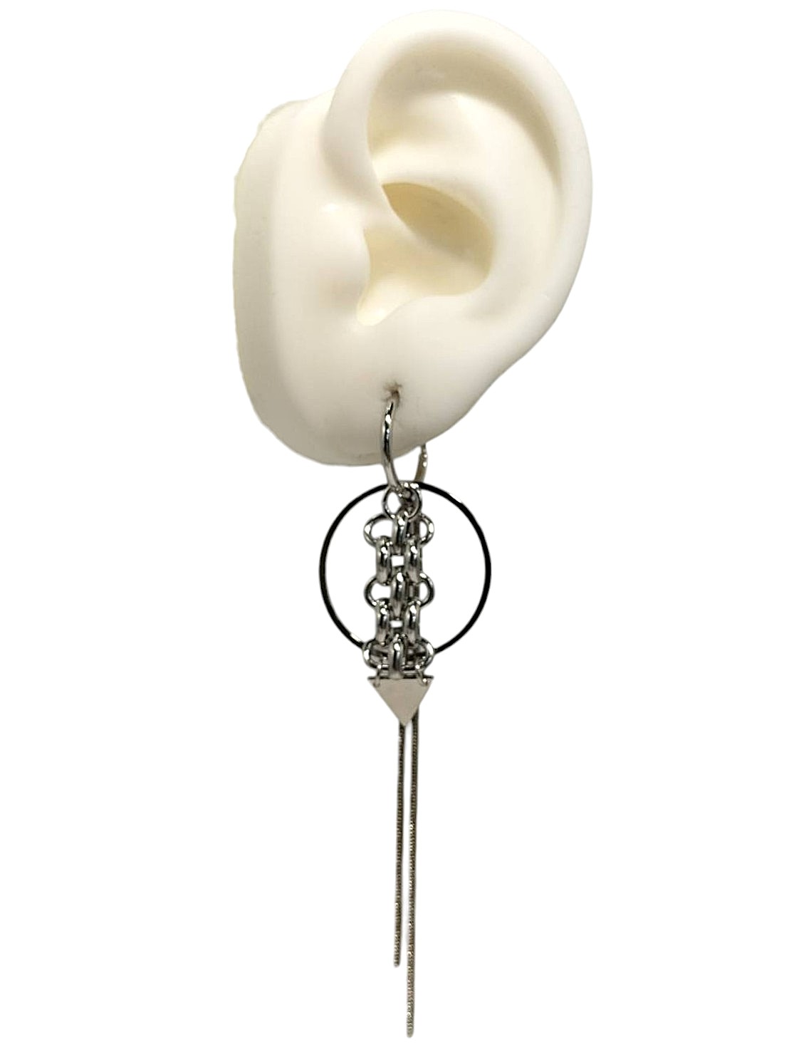 アイテム:ロングモチーフデザインイヤリング 素材:メタル・アクリルパーツ カラー:シルバー・乳白 全長:約8.5㎝~9㎝