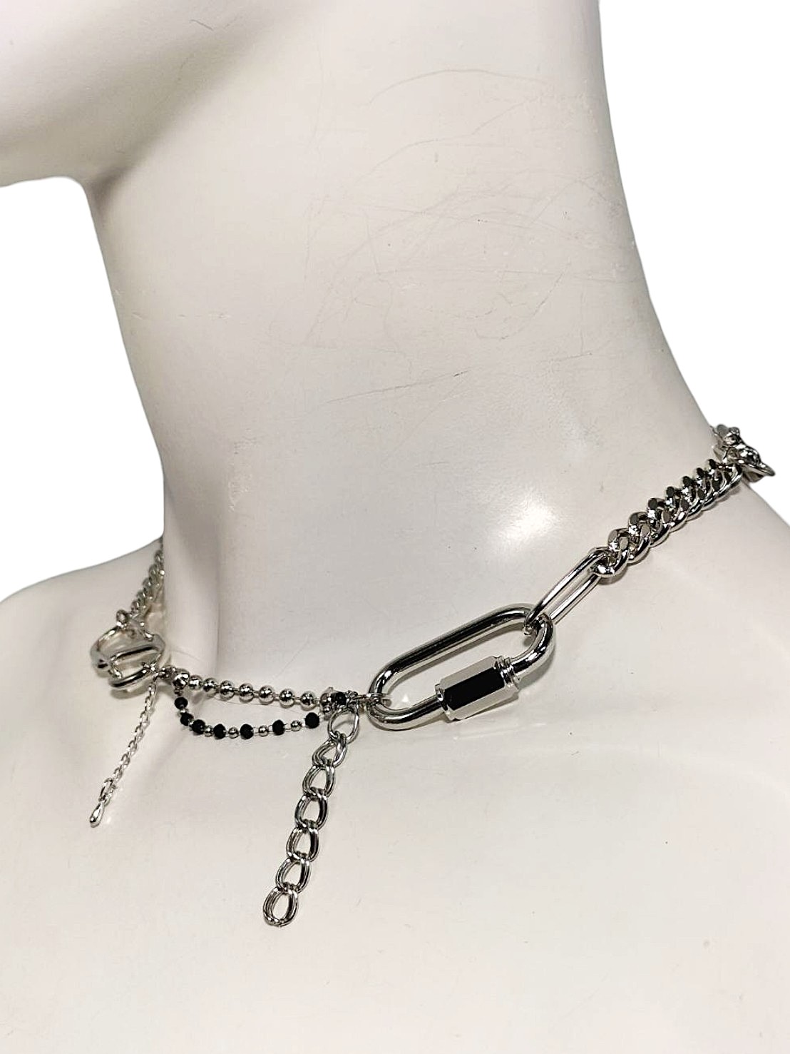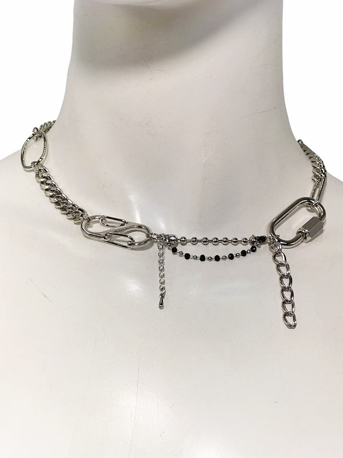 アイテム:メタルフックミックスデザインネックレス 素材:メタル・アクリル カラー:クリアグリーン・ゴールド