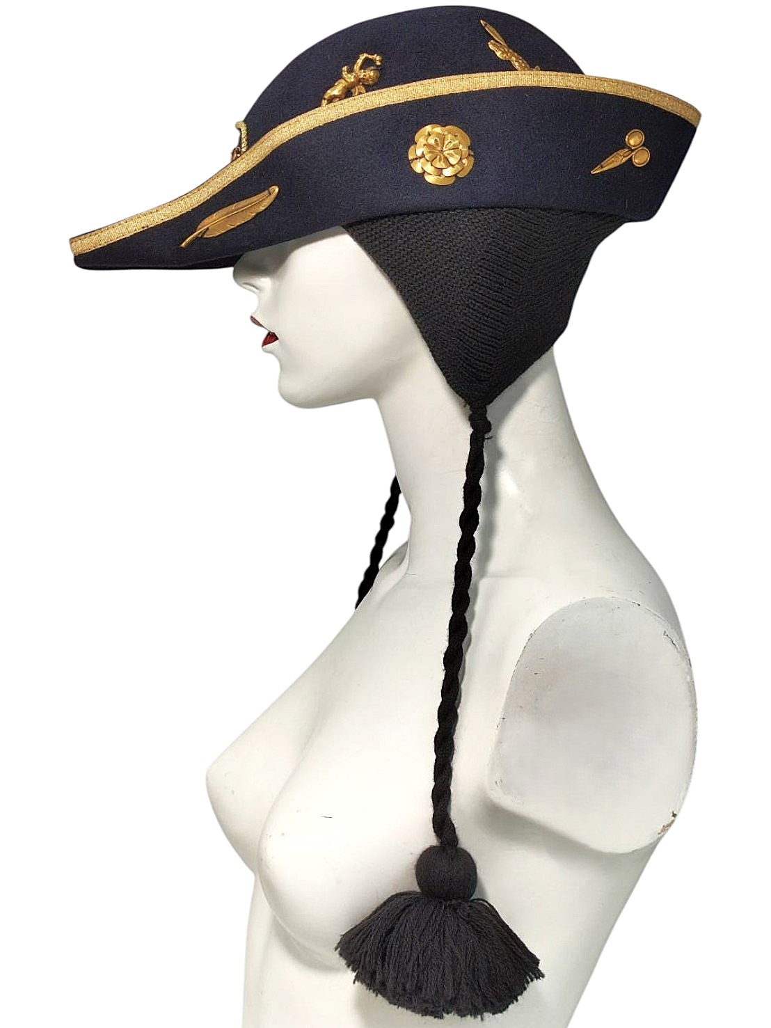 アイテム:パイレーツハット カラー:ネイビー・ゴールド・ブラック 素材:ウール・ニット・メタル