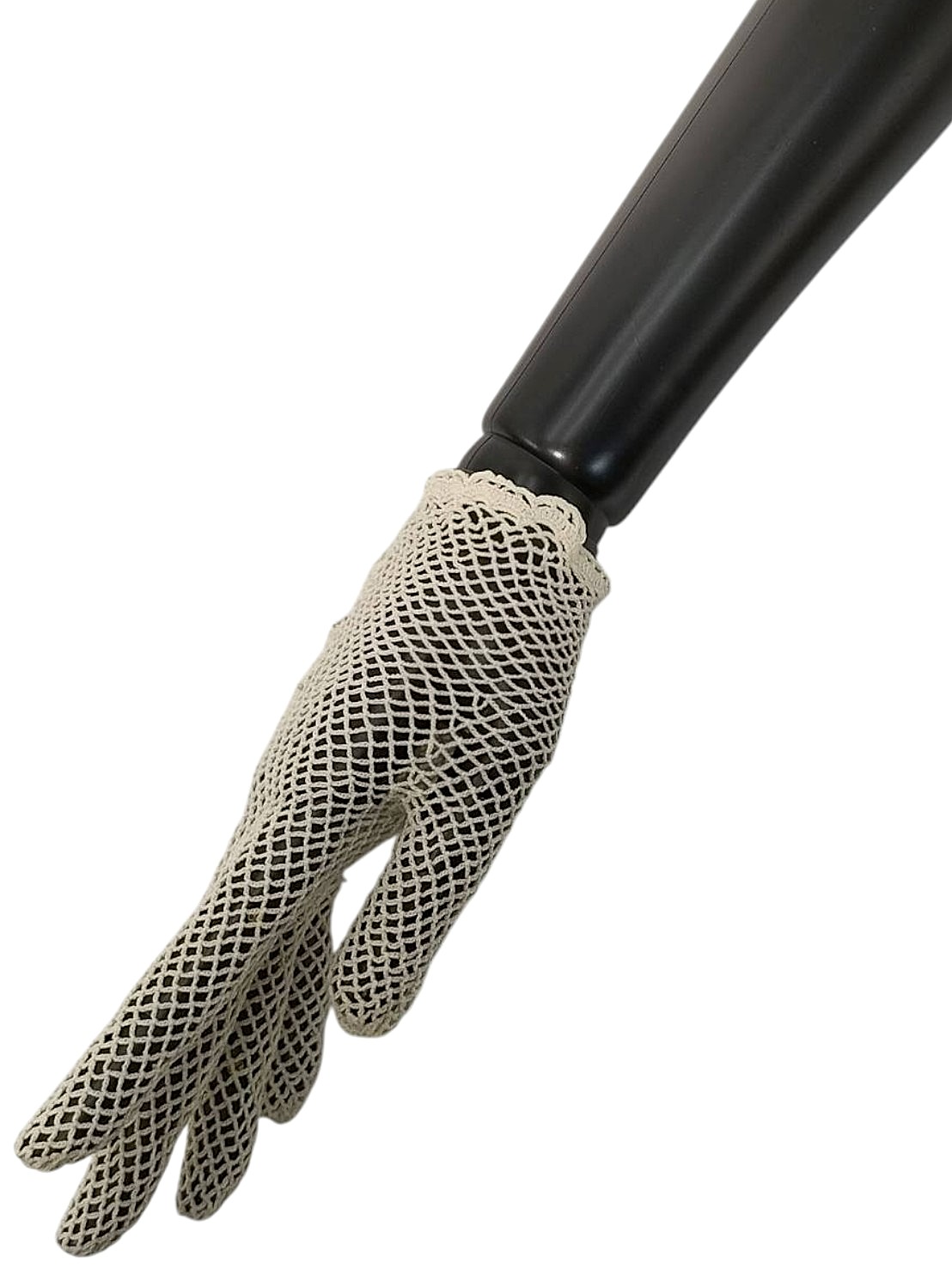 アイテム:レース編みショートグローブ 素材:アクリル・コットン カラー:アイボリー 全長:18㎝