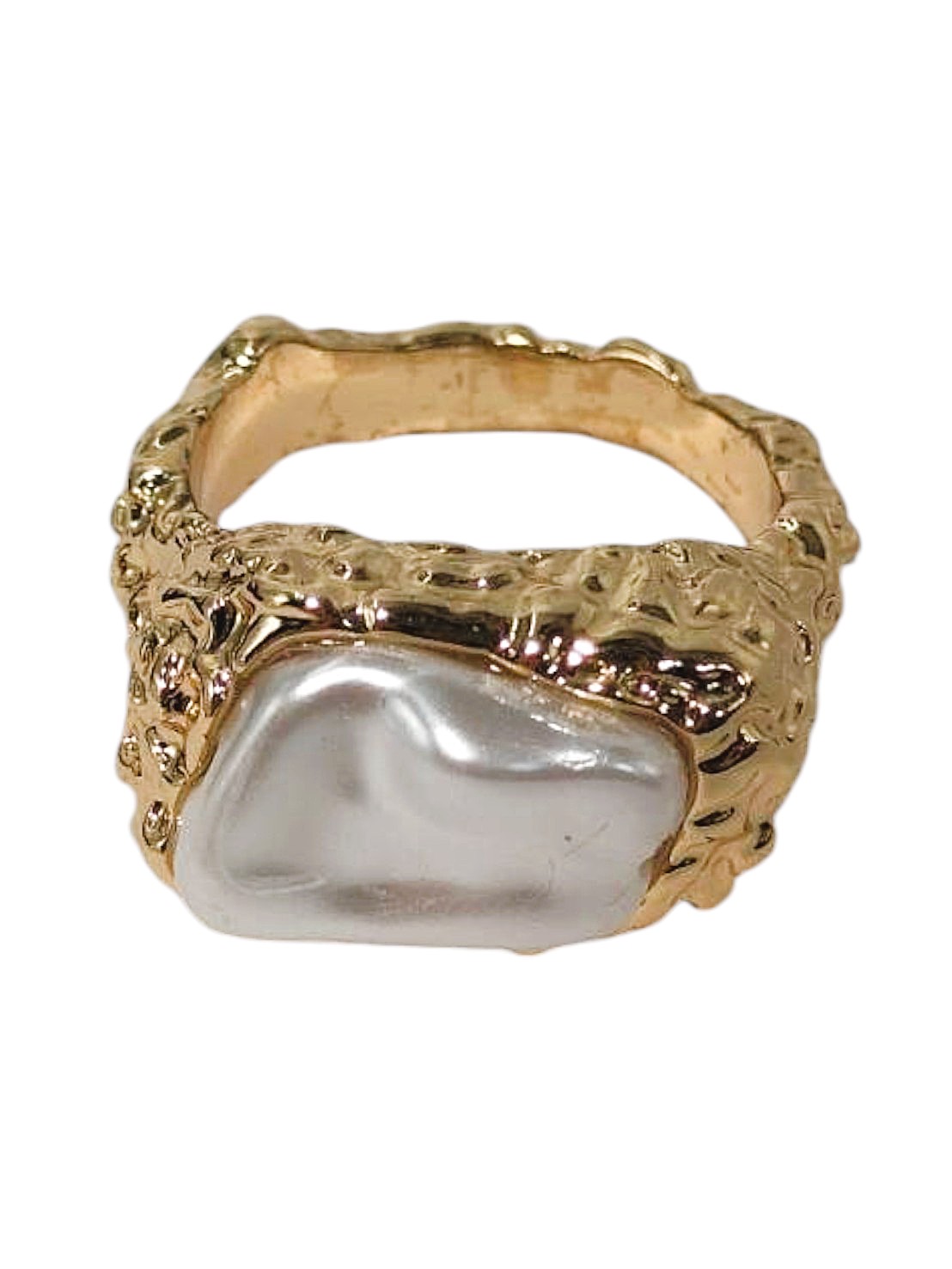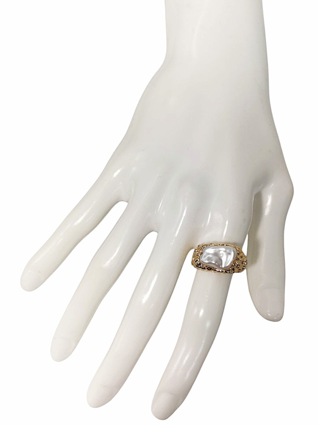 アイテム:変形パール付きリング 素材:メタル・変形樹脂パール サイズ:52(12号・16.5 mm・US6・UKL - L1/2) 全長:約1㎝ カラー:ゴールド・キスカパール