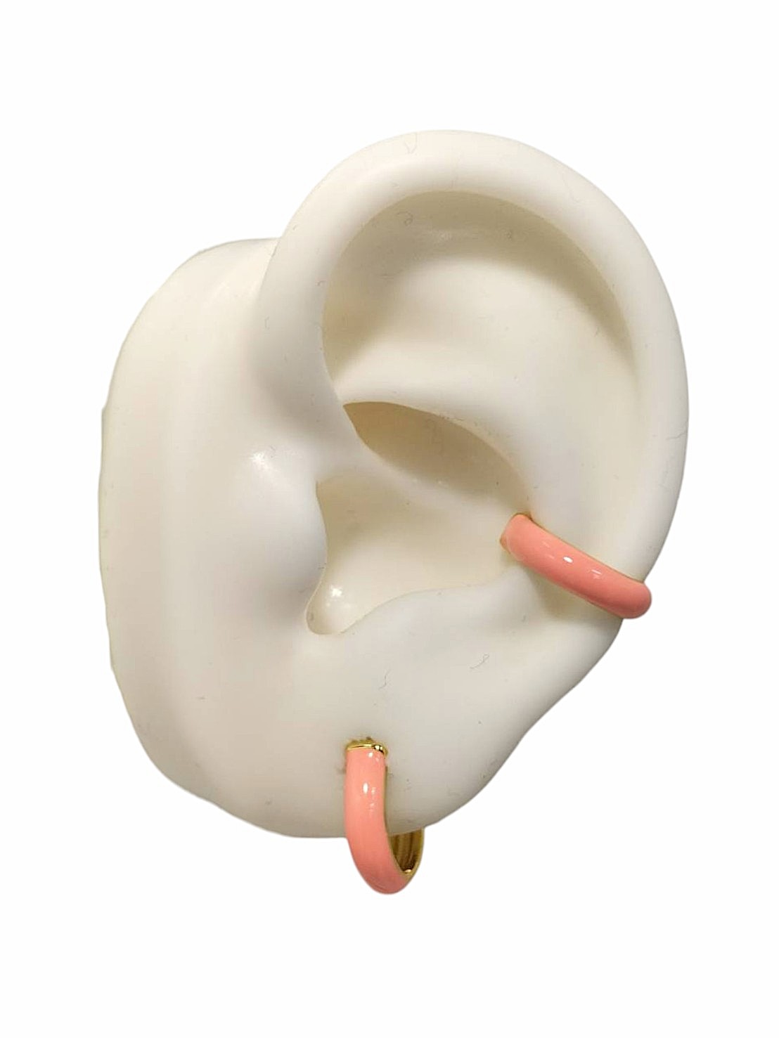 メモ | アイテム:エナメル フープカフ・イヤリング 素材:メタル・エポ樹脂 全長:約1.4㎝ カラー:ゴールド・サーモンピンク |