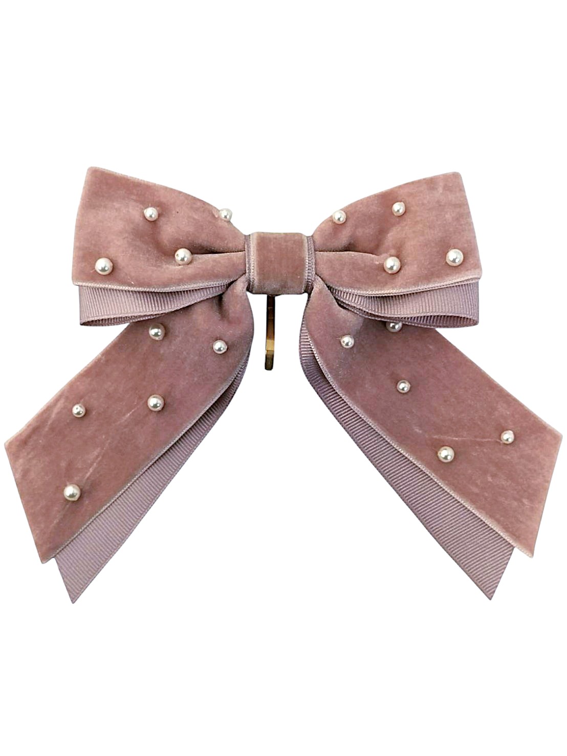 | メモ | アイテム:パール付きベルベット&グログランリボンポニーフック 素材:ベルベット・グログラン・樹脂パール 全長:約12㎝ カラー:ピンク・ホワイトパール |