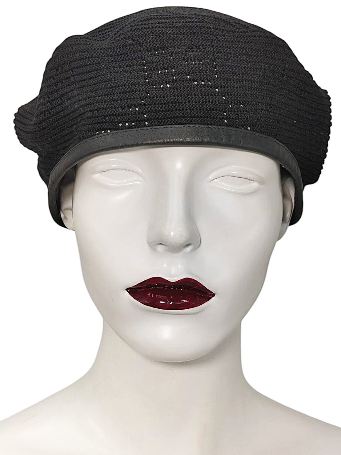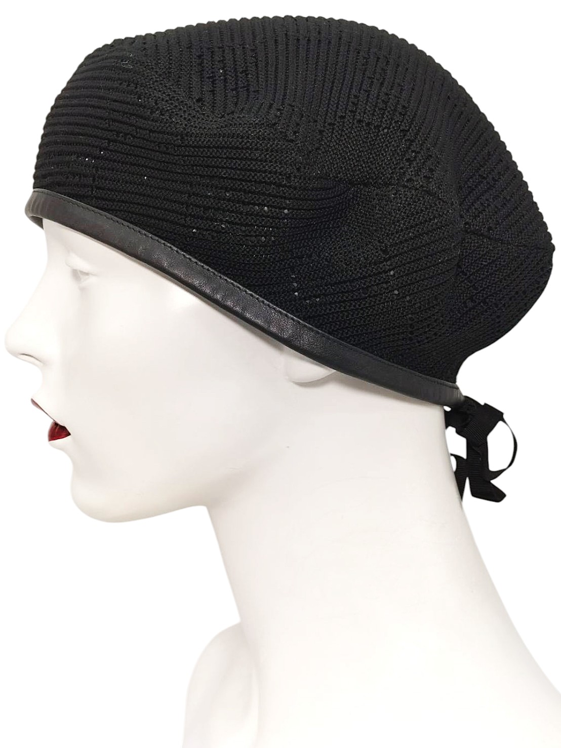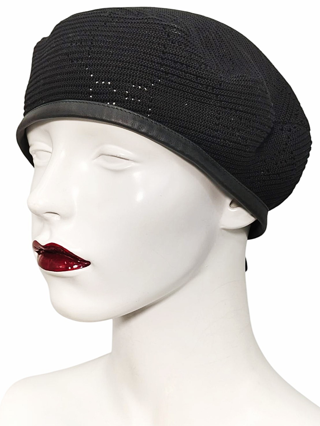 アイテム:サマーニットベレー カラー:ブラック 素材:コットン・レザー