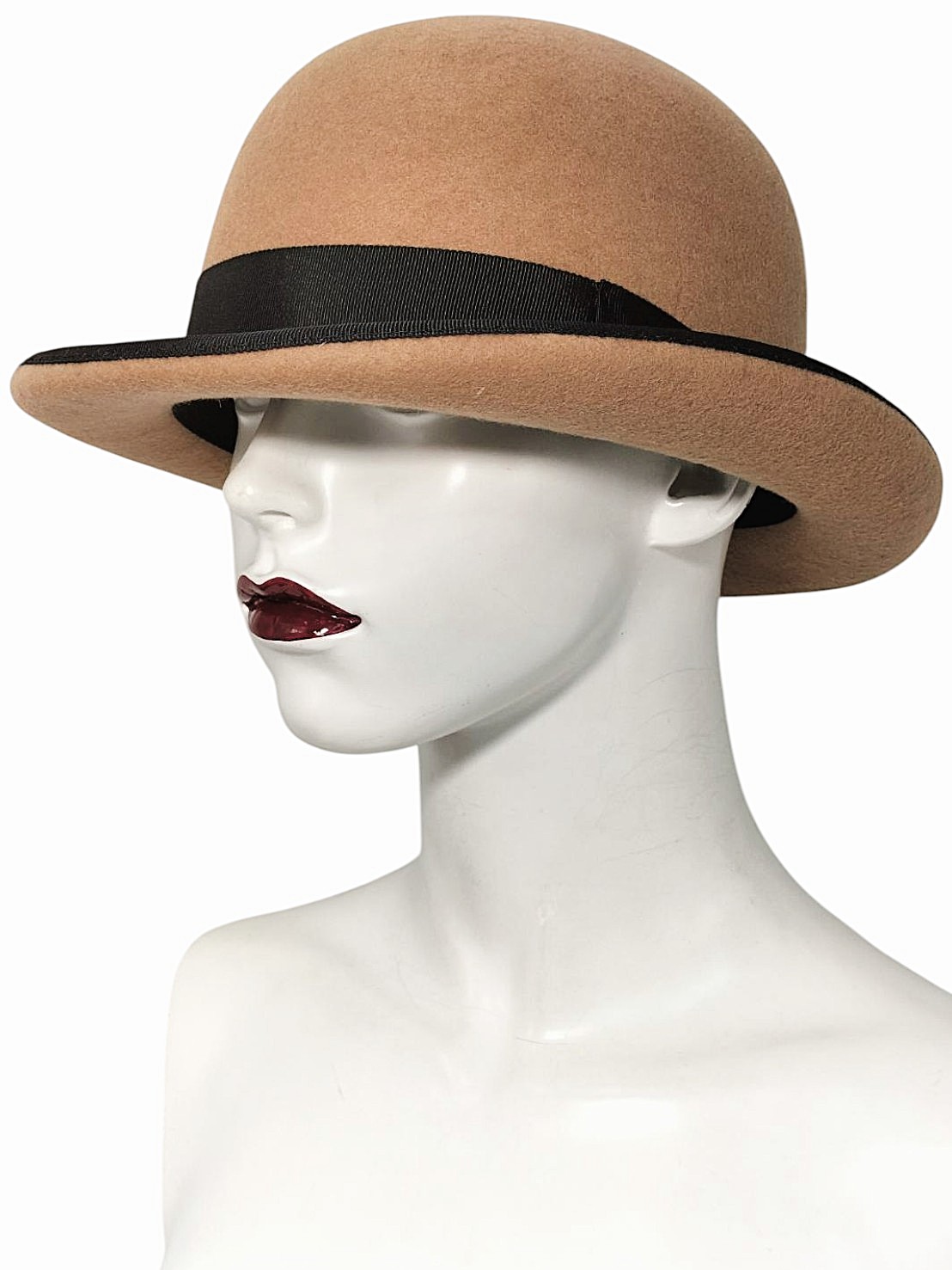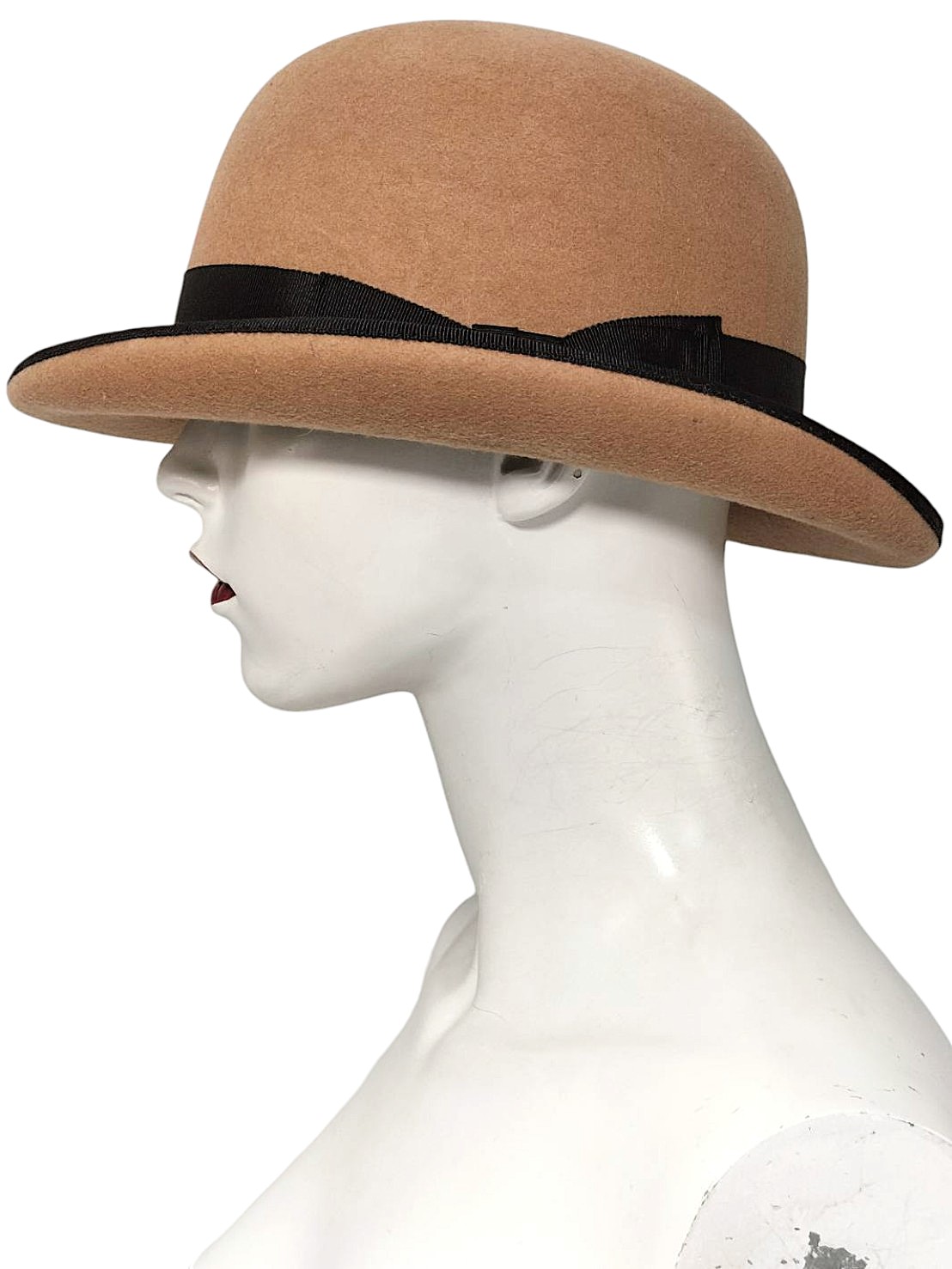 アイテム:リボン付きフェルトハット 素材:ウール・グログランリボン カラー:キャメル・ブラック