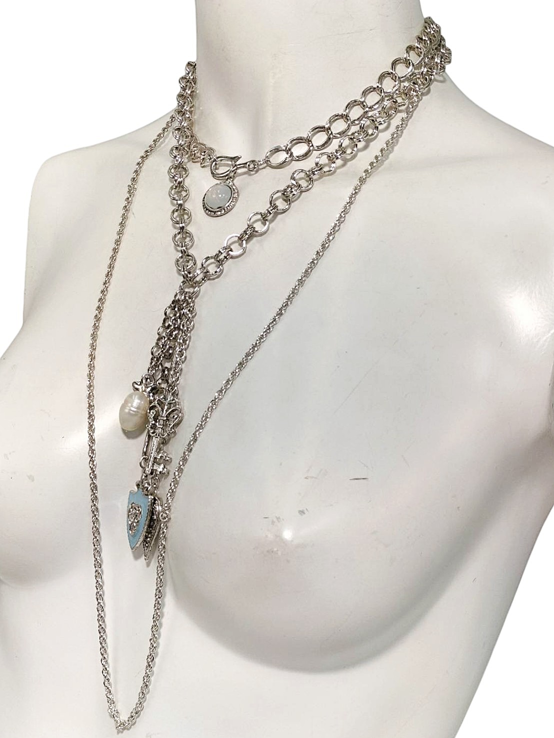 | メモ | アイテム:チャームフリンジデザインネックレス 素材:メタル・淡水パール カラー:シルバー・ホワイトパール・サックス ※AC9999235同型 |