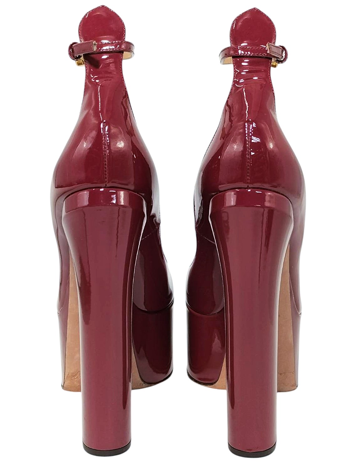 | メモ | アイテム:厚底ストラップシューズ(プラットフォームあり) 素材:エナメル ヒール:16cm ストーム(前):約6cm カラー:バーガンディー・ワインレッド ※金具ゴールド |
