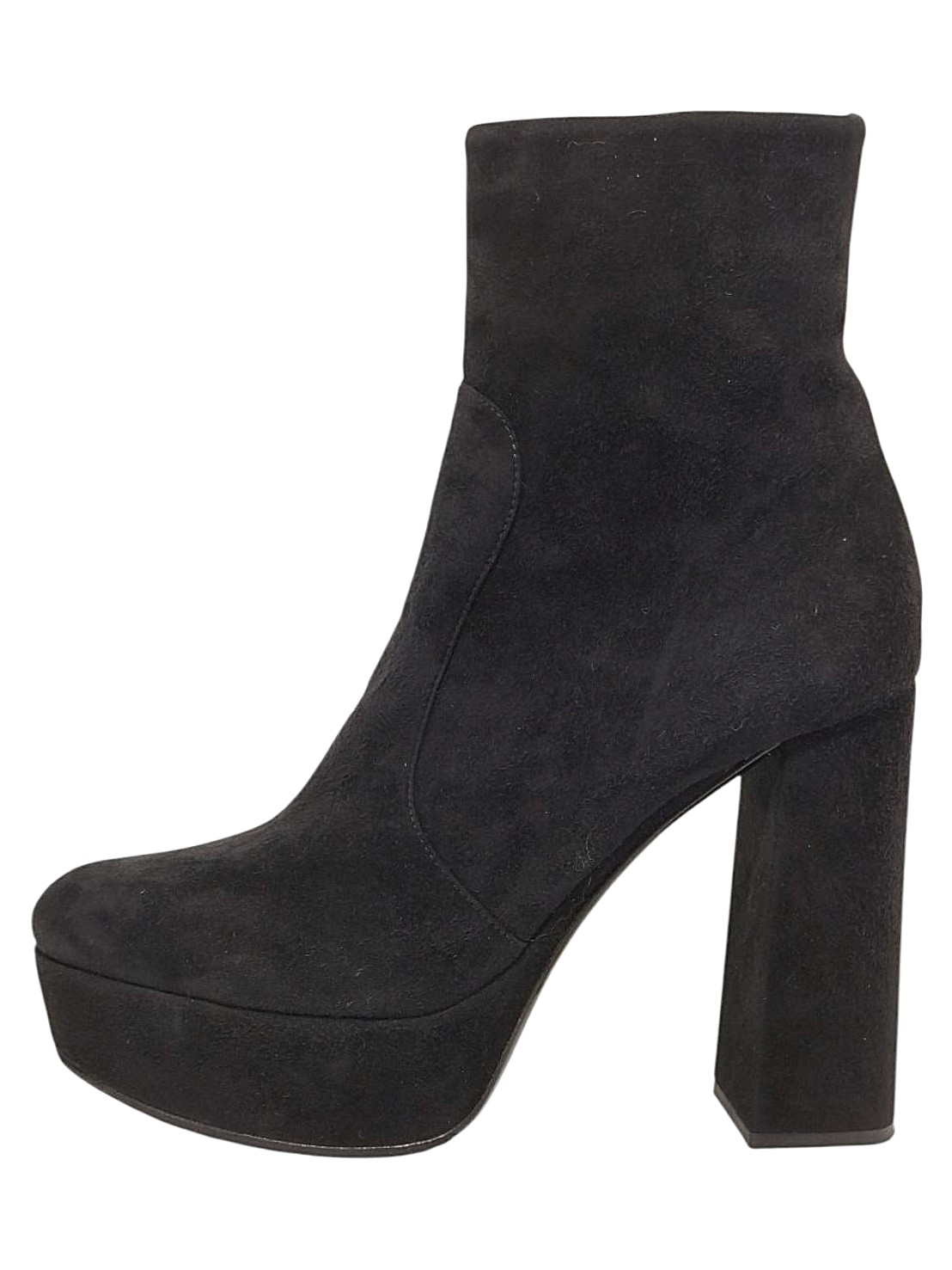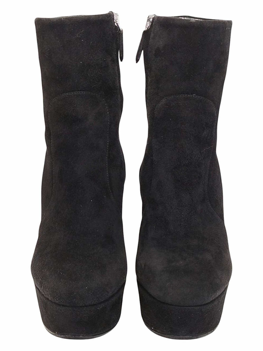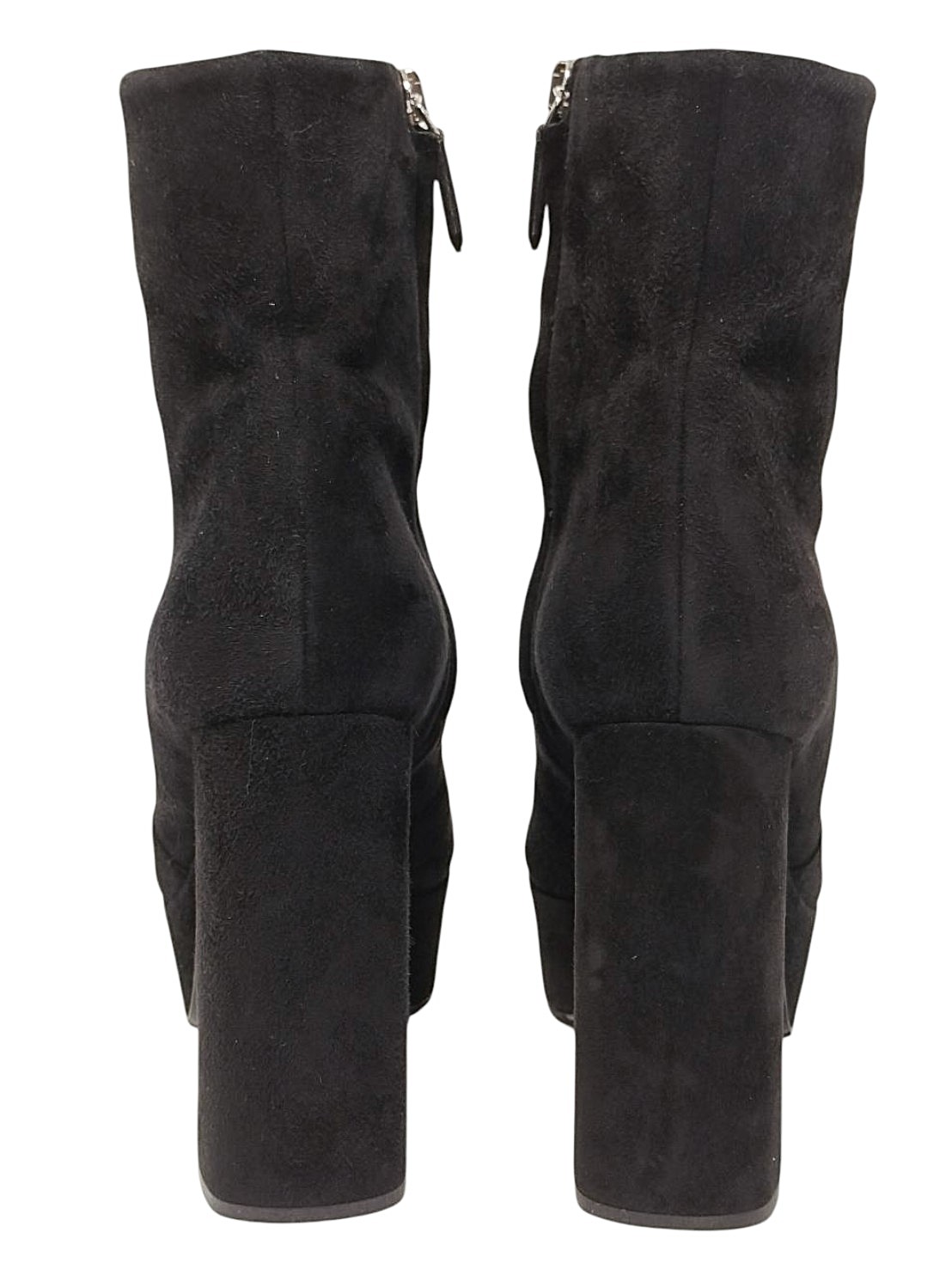 アイテム:ショートブーツ(プラットフォームあり) 素材:スエード ヒール:約11.5㎝ ストーム(前):約4cm 全長:約24.5㎝ カラー:ブラック・ブラックニッケル