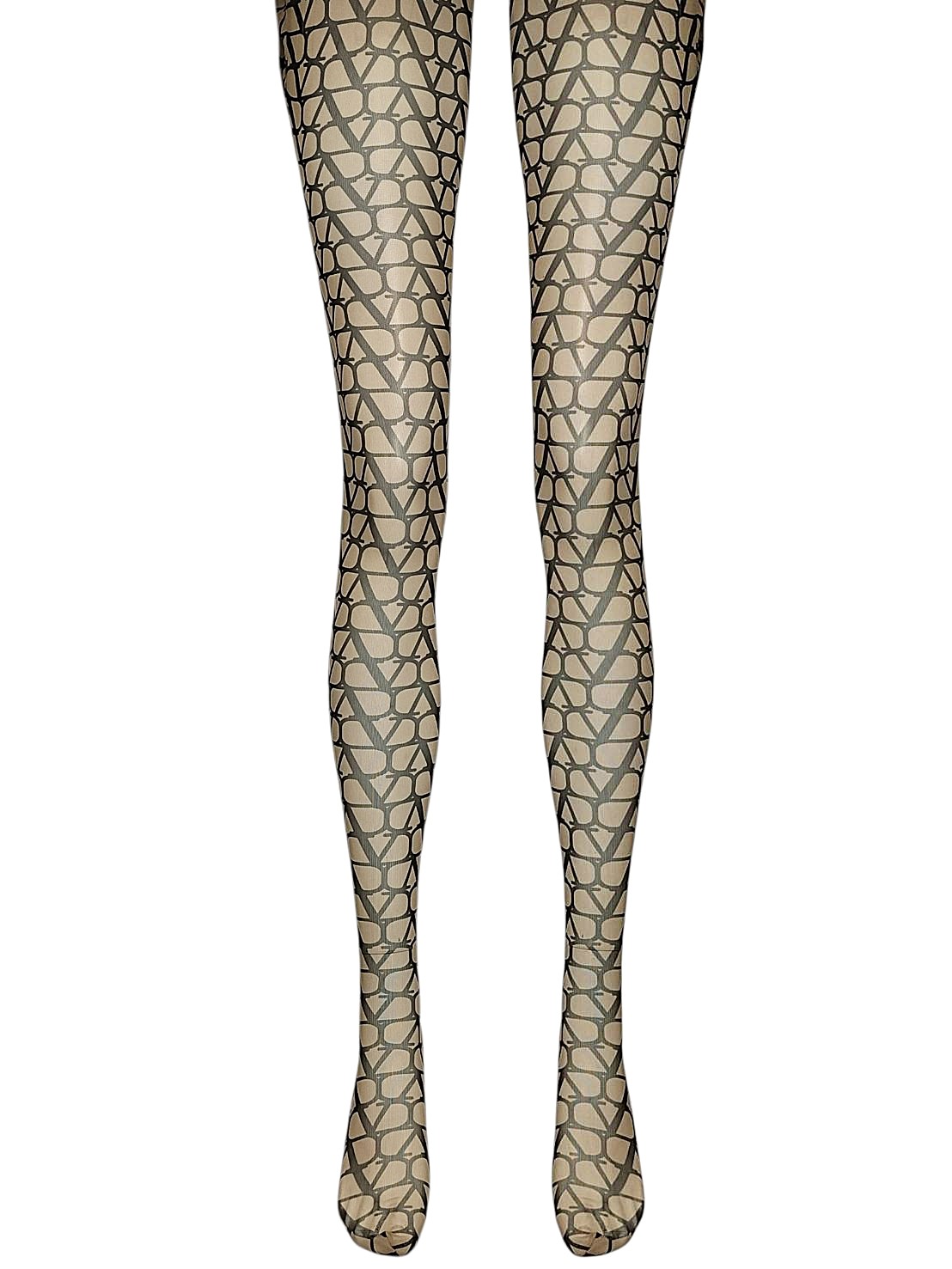 アイテム:ロゴデザインメッシュタイツ カラー:ベージュ・ブラック