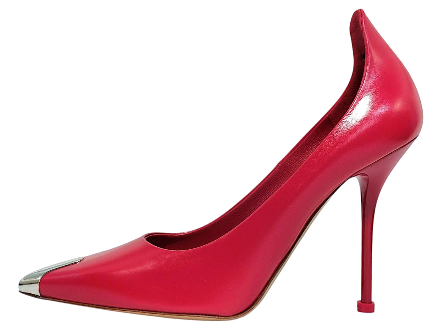 アイテム:デザインハイヒール 素材:レザー・メタル ヒール:約10.5㎝ カラー:ロースレッド・シルバー