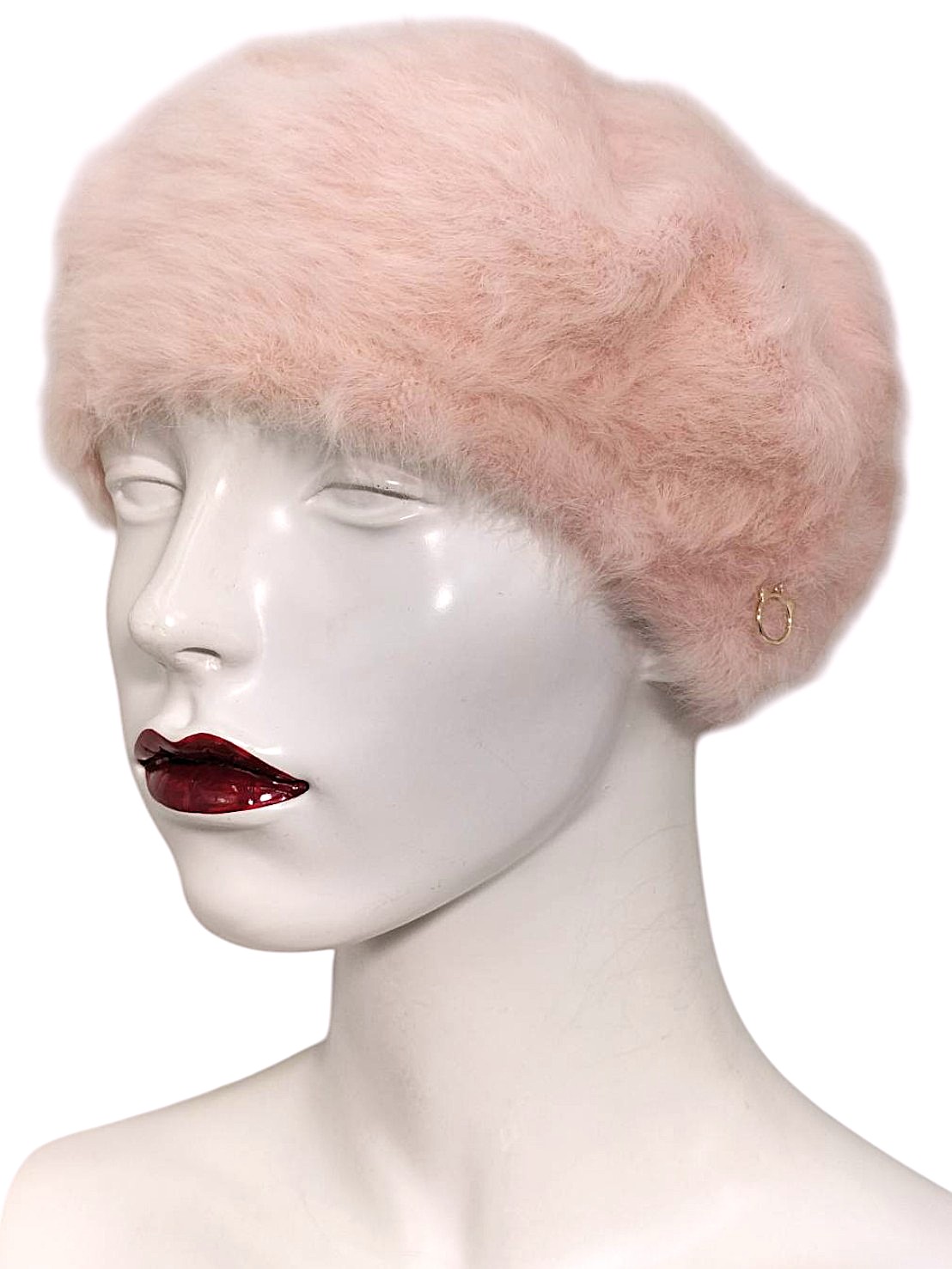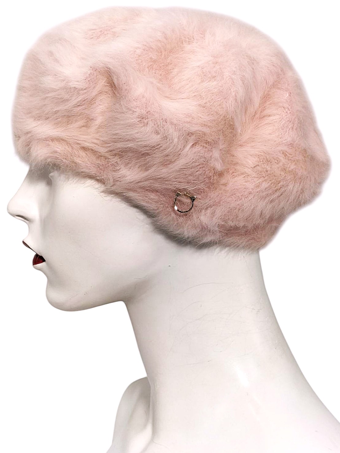 アイテム:キャットチャーム付きベレー帽 素材:ナイロン・アンゴラ・ポリウレタン カラー:ベビーピンク・ゴールド