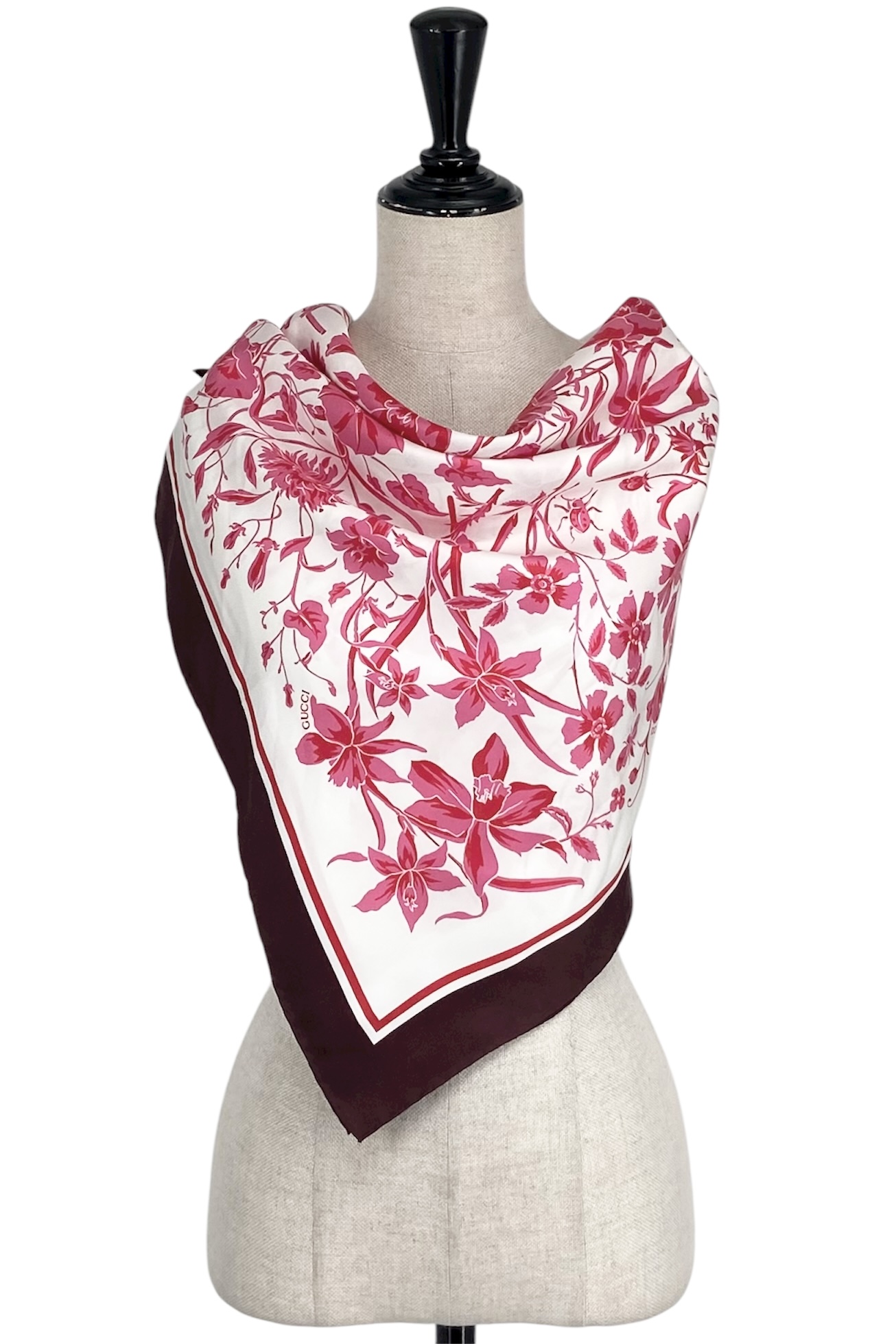 アイテム:大判スカーフ 素材:シルク サイズ:約85×85㎝ カラー:ピンク・レッド・ホワイト・バーガンディー