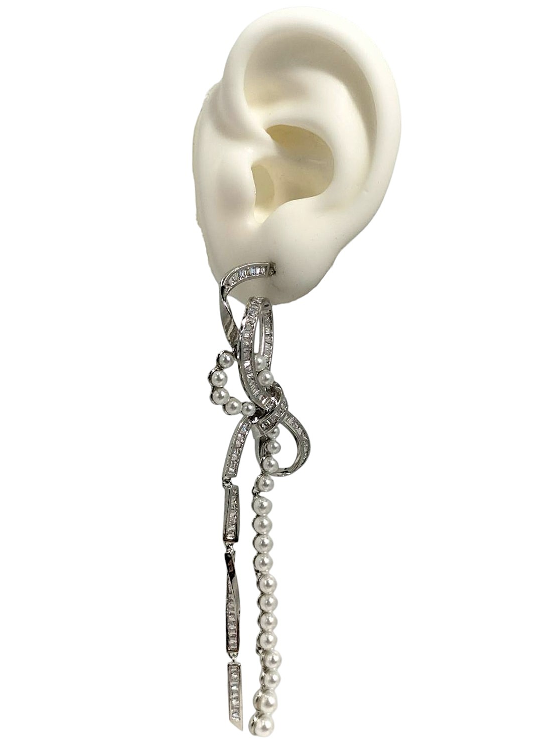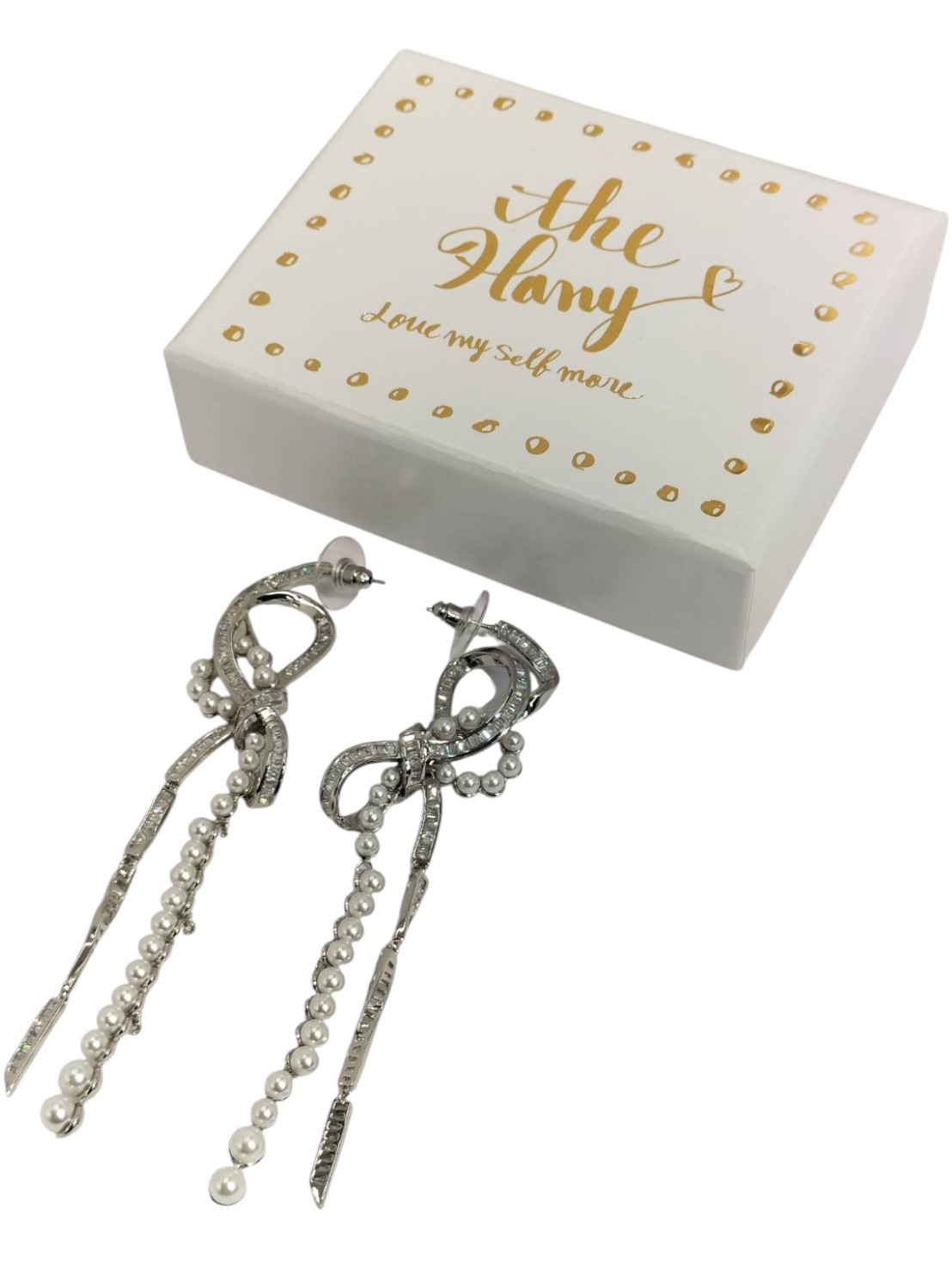 | メモ | アイテム:パール付きリボンデザインフリンジピアス 全長:約10㎝ 素材:メタル・ガラス・樹脂パール カラー:シルバー・クリスタル・パールホワイト |