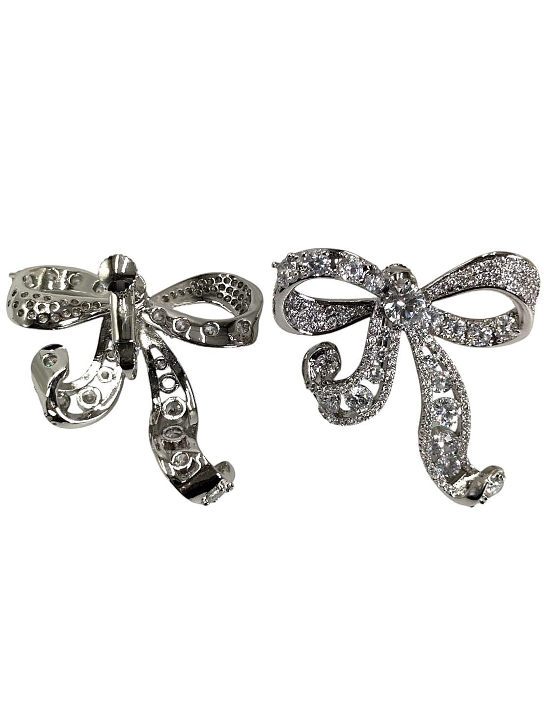 | メモ | アイテム:リボンデザインビジューイヤリング 全長:約3.5㎝ 素材:メタル・ガラス カラー:シルバー・クリスタル |