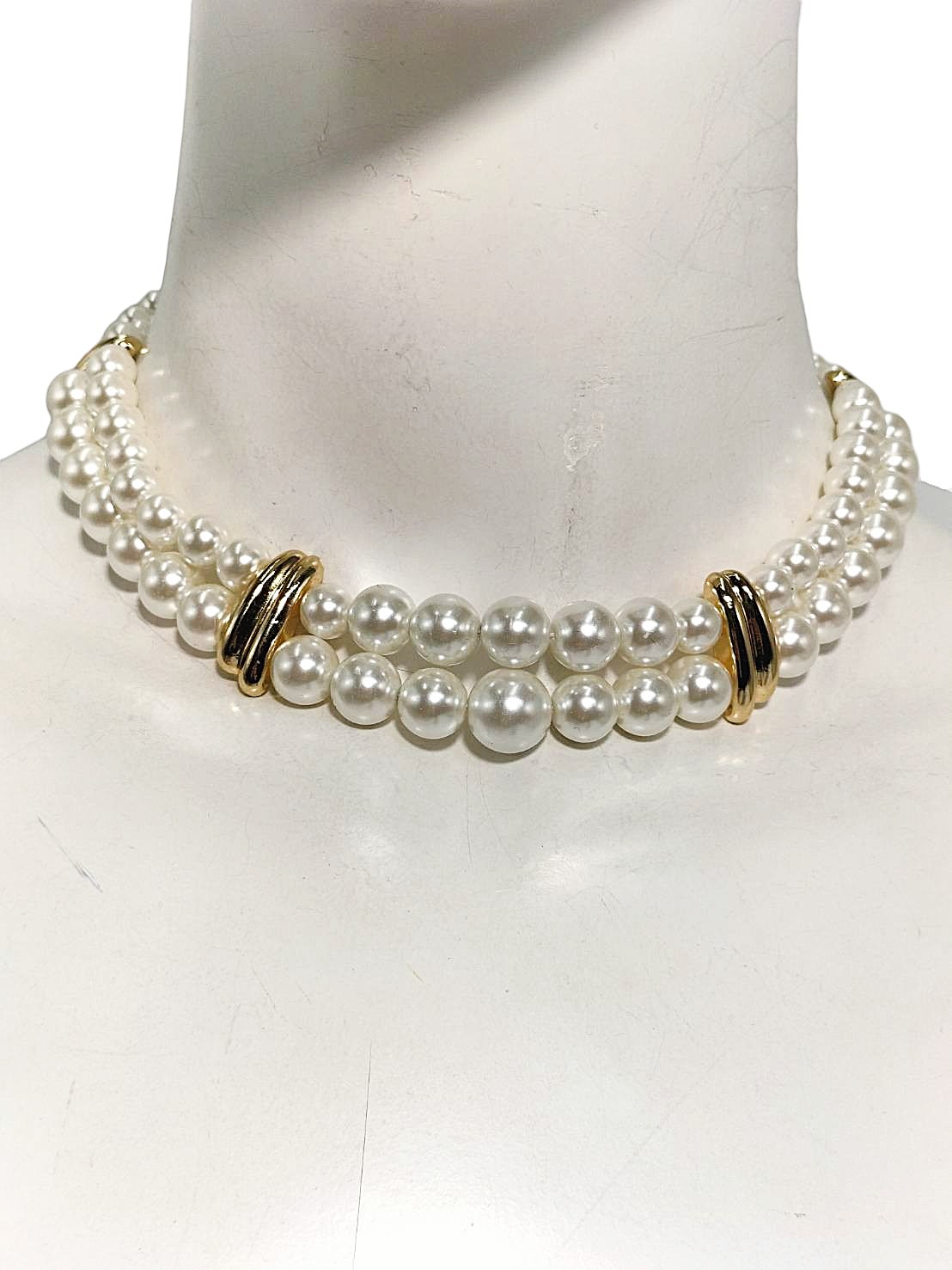 アイテム:メタルモチーフ付きパール2連ネックレス 全長:約33㎝ 素材:メタル・樹脂パール カラー:ゴールド・ホワイトパール