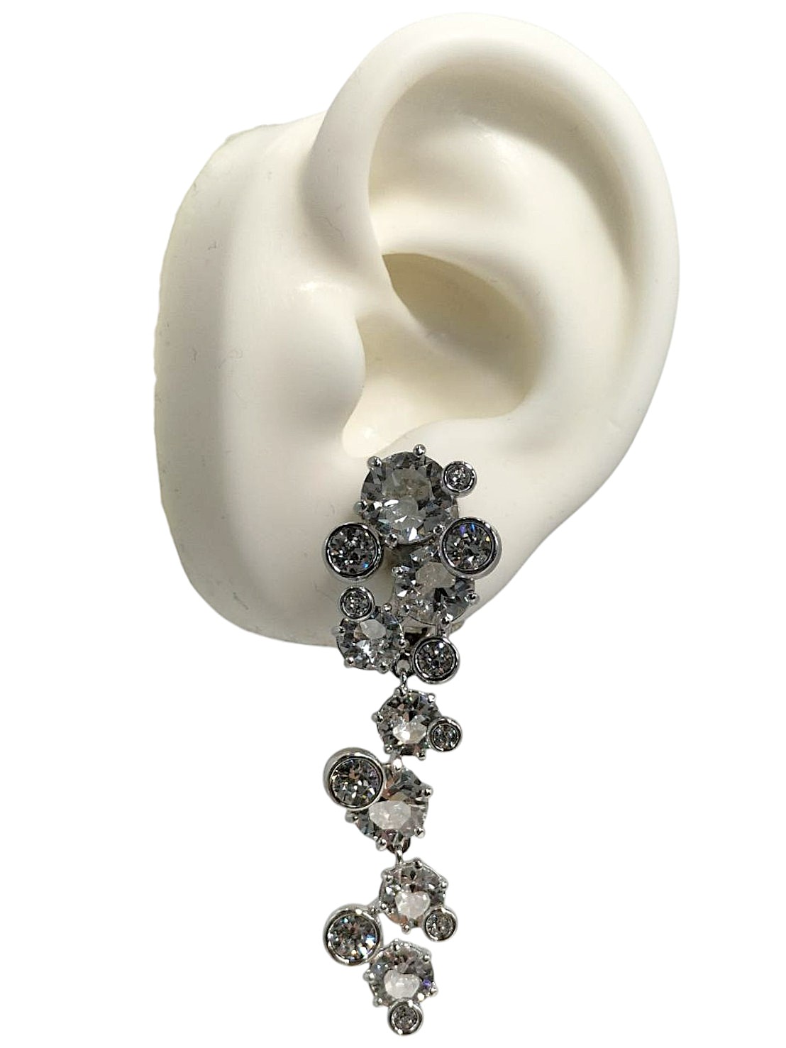 アイテム:ビジューデザインロングイヤリング 全長:約5.2㎝ 素材:メタル・ガラス カラー:シルバー・クリスタル・クリア