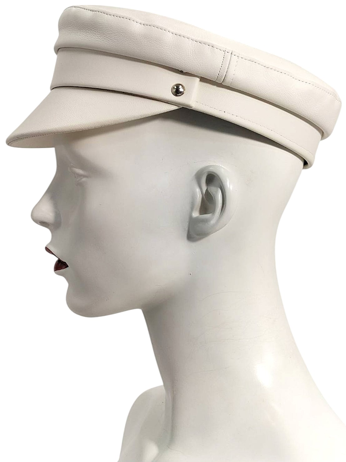 アイテム:ベイカーボーイ ハット・キャスケット 素材:レザー カラー:ホワイト ※金具部分シルバー