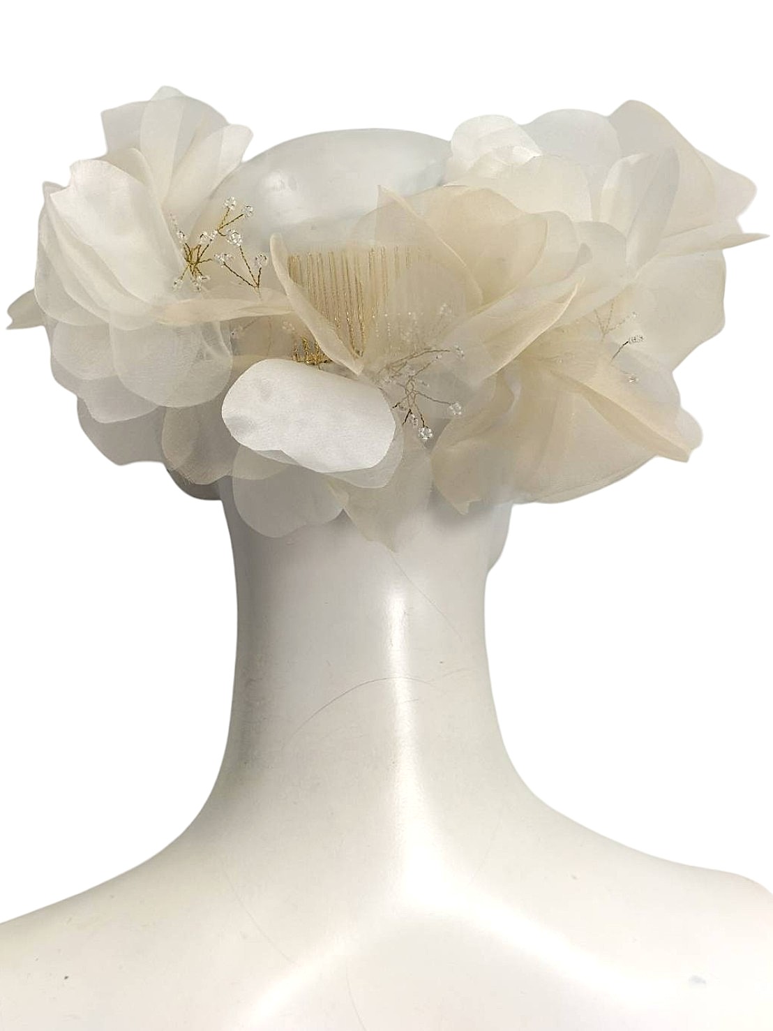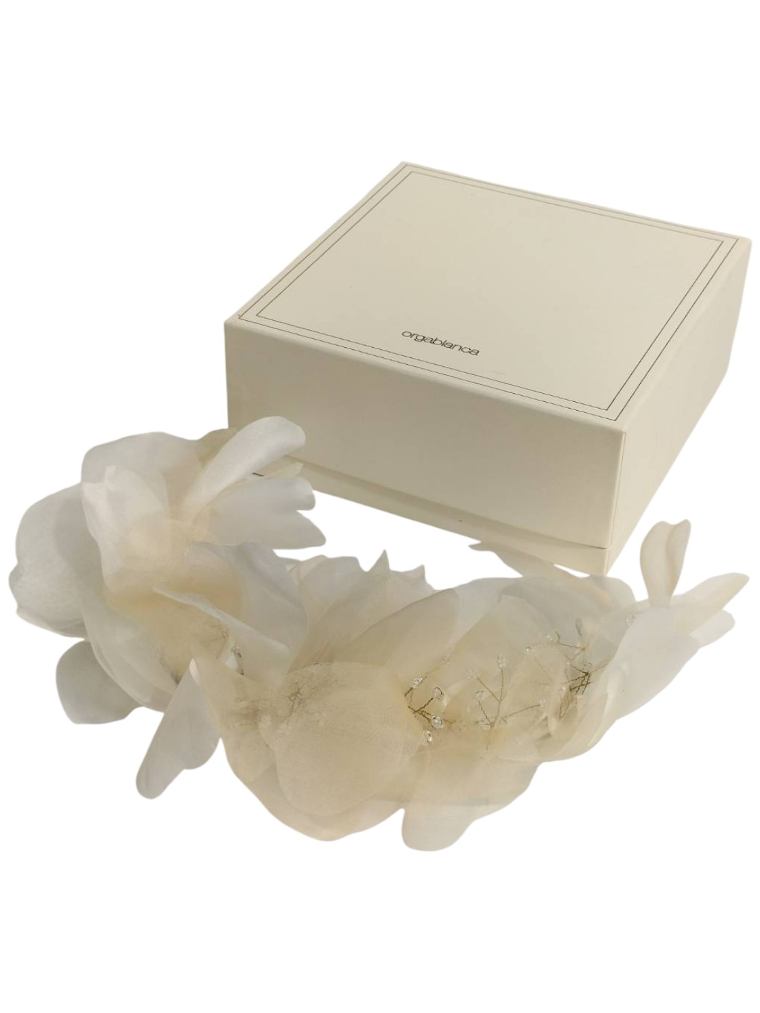 | メモ | アイテム:コーム付きフラワーヘッドドレス 素材:オーガンジー・サテン・ガラスビーズ・メタル カラー:アイボリー・ベージュ・ホワイト・乳白・ゴールド 全長:3㎝ 幅:約1.4㎝ |