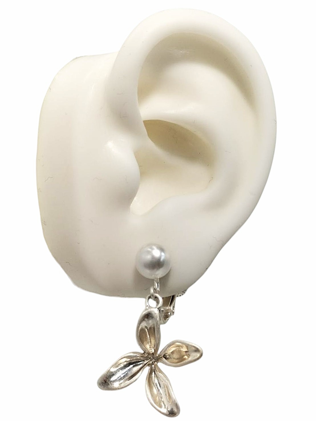 アイテム:パール付きメタルフラワーイヤリング 素材:メタル・樹脂パール 全長:約3.5㎝