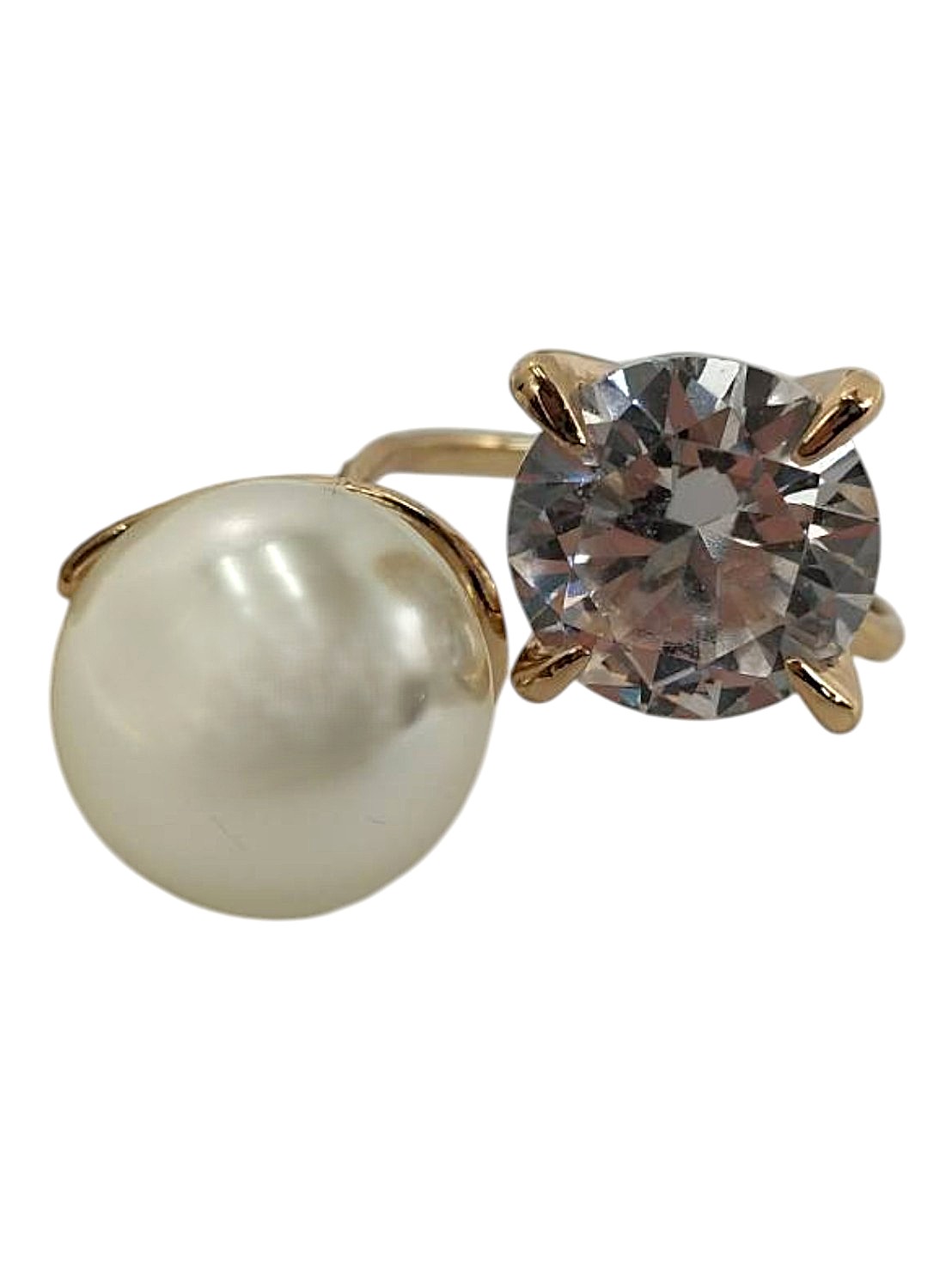 アイテム:ビッグビジュー&パールデザインリング 素材:メタル・エポストーン・樹脂パール サイズ:51(11号・16.3mm・US5 3/4・UK-L) 高さ:約1.3㎝ カラー:ゴールド・クリア・キスカパール