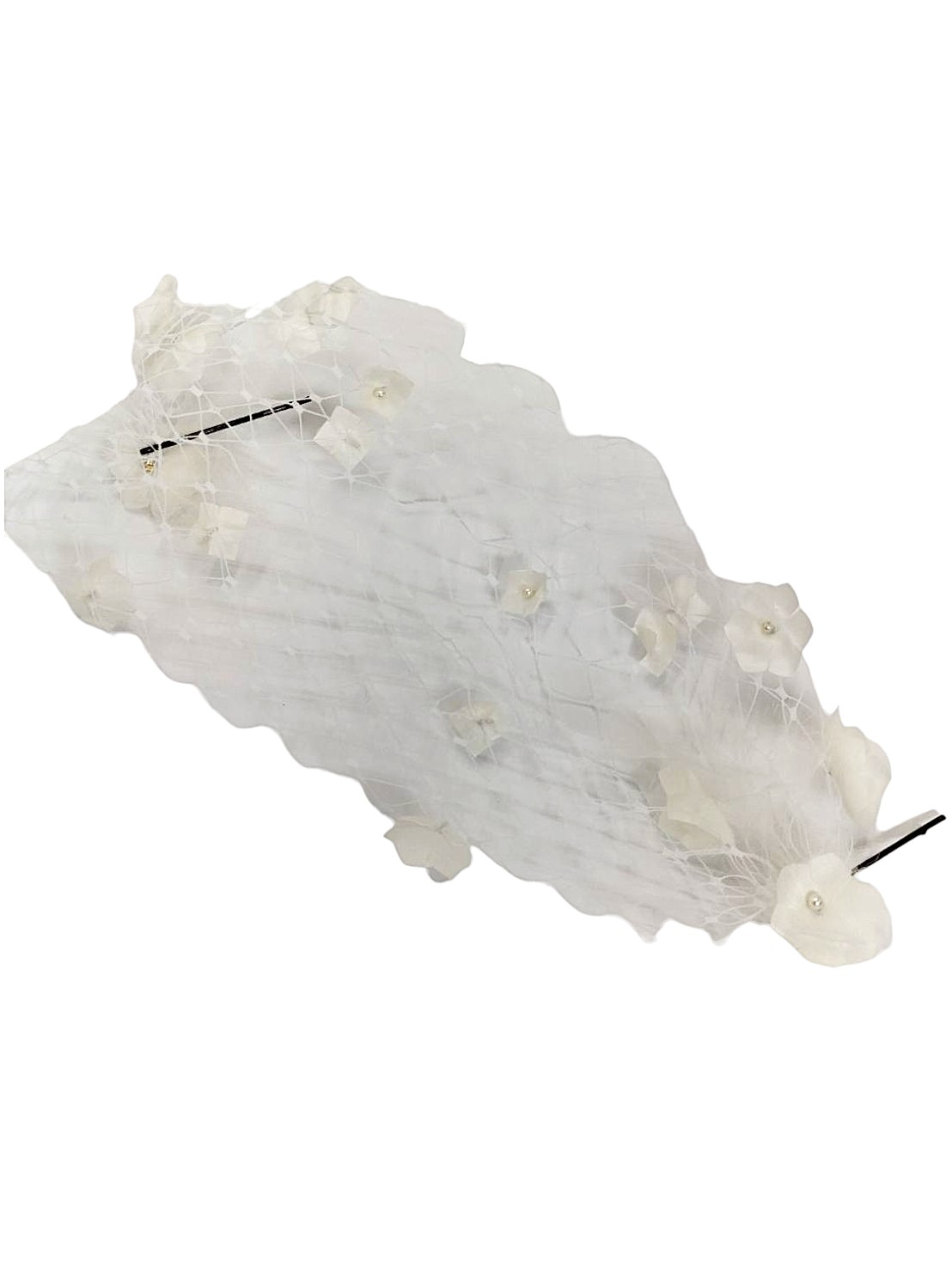 | メモ | アイテム:フラワー付きベールヘッドドレス・ヘアアクセ 素材:ネットチュール・オーガンジーサテン・樹脂パール・ カラー:アイボリー・パールホワイト・ホワイト |