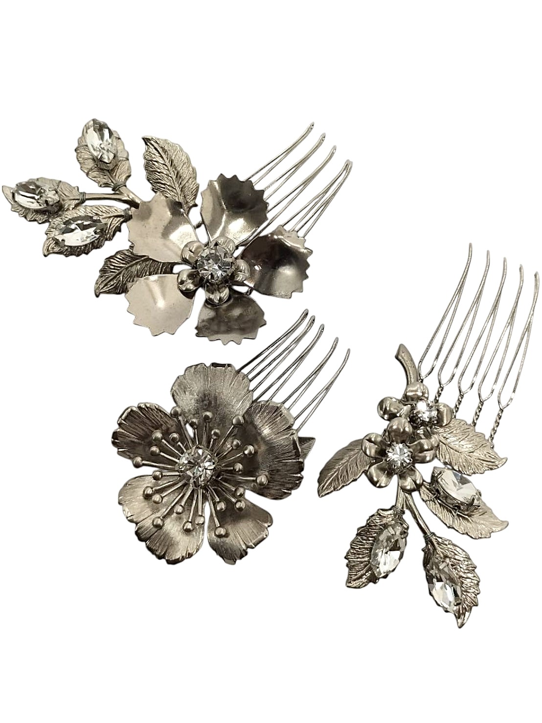 | メモ | アイテム:ヘアコーム3ケセット(フラワー・リーフモチーフ) 素材:メタル・ガラス カラー:シルバー ※品番HE999681同型 |