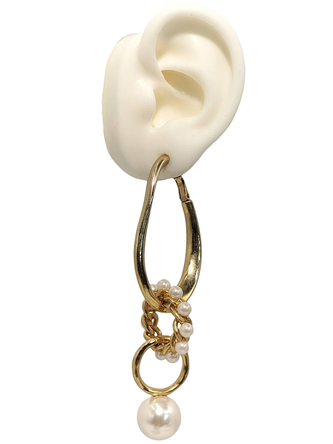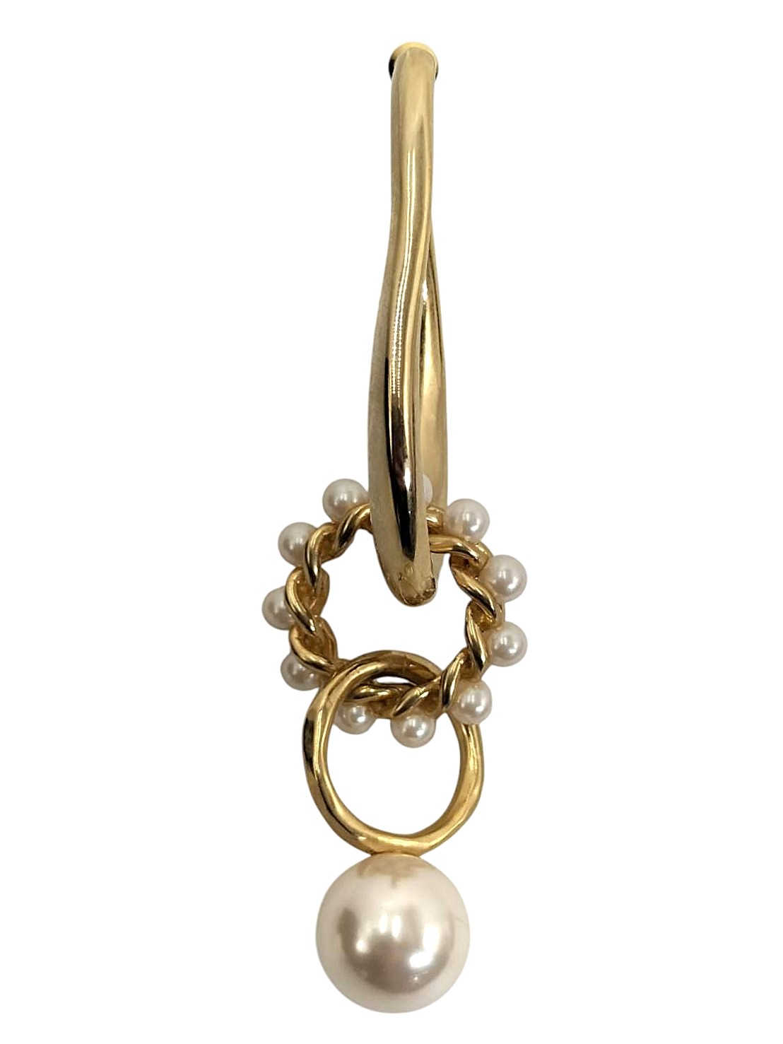 アイテム:ループ系デザイン片耳ピアス 素材:メタル・ガラスパール 全長:約9.5㎝ カラー:ゴールド・ホワイト