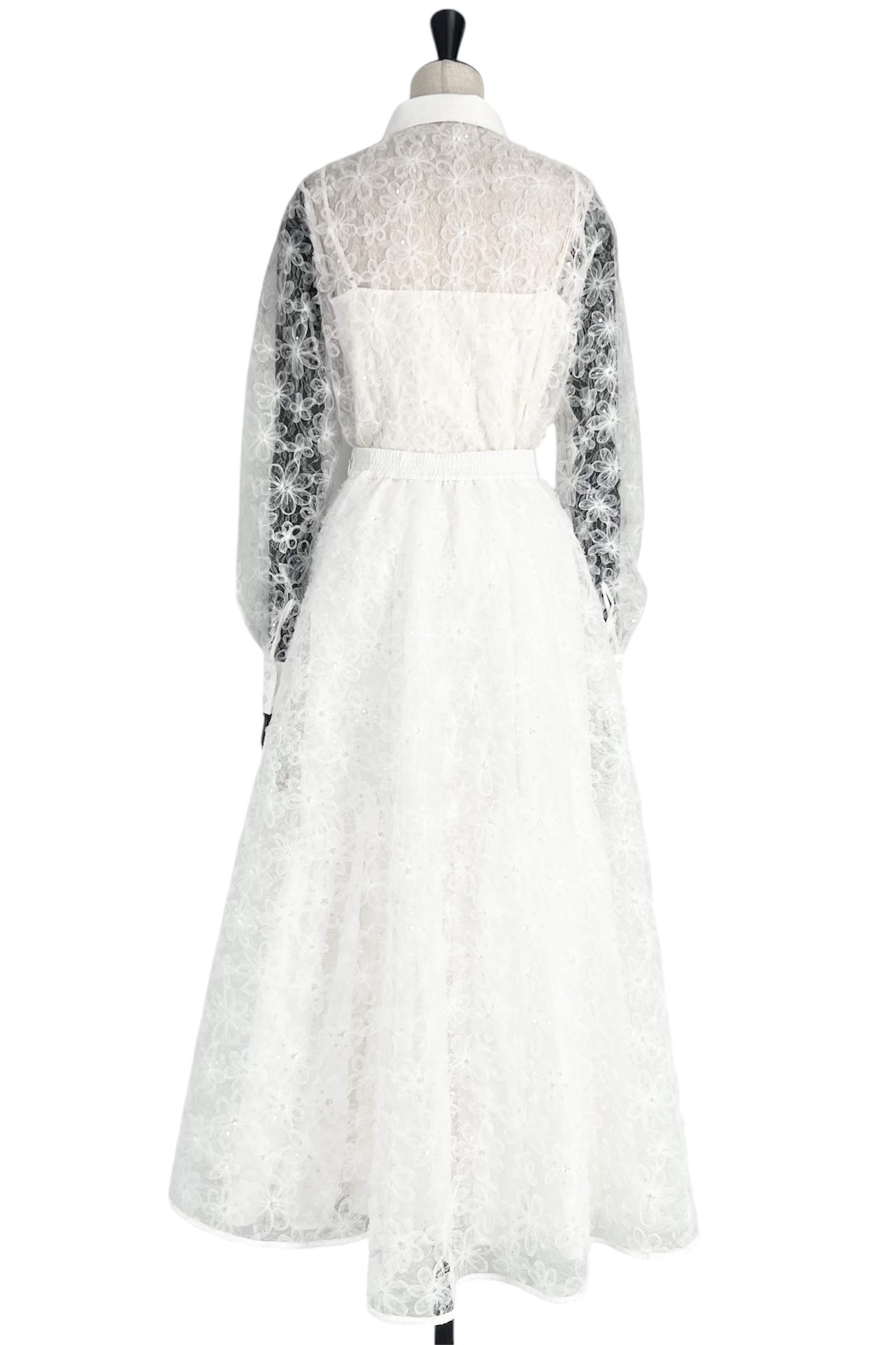 素材:ナイロン、ポリエステル、スパンコール トップス TO559664 ¥5,000- スカート SK557232 ¥7,000- セットアップ SE555831 ¥10,000-