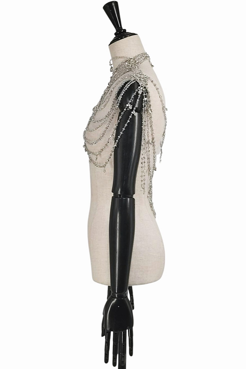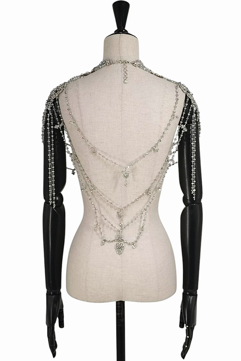 アイテム:ビジュー付きボディーアクセサリー・ボディーチェーン・チェーンハーネス 素材:メタル・ガラス カラー:シルバー・クリスタル