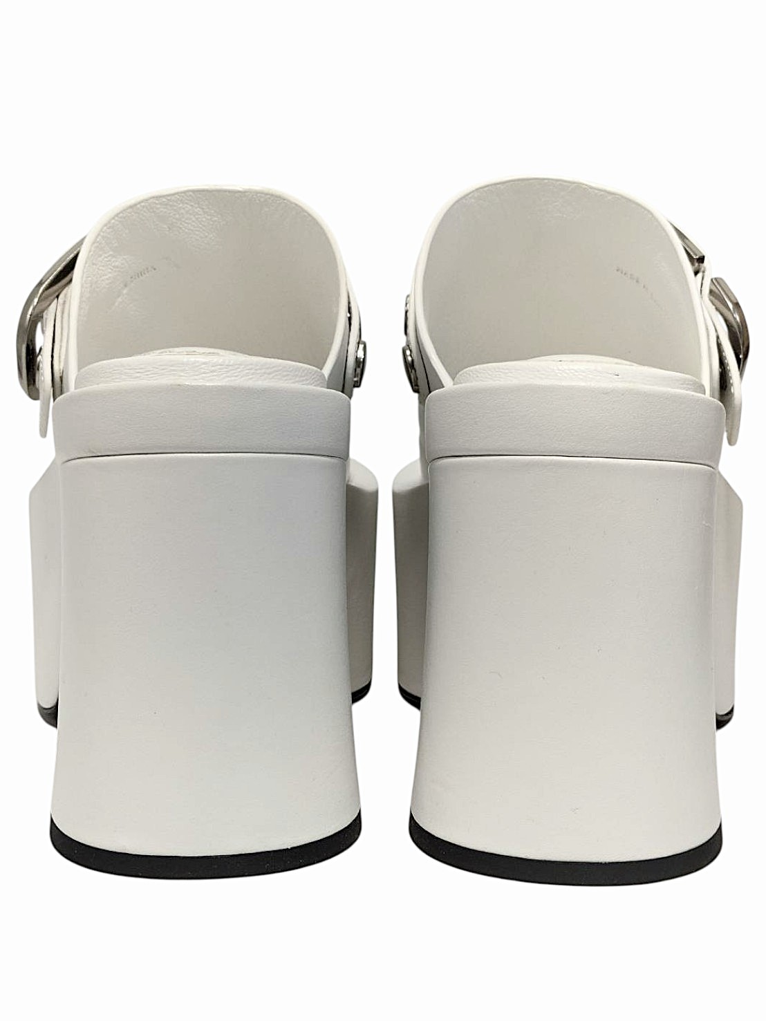 | メモ | アイテム: クロッグサンダル・サボサンダル(プラットフォームあり) 素材:レザー・メタル ヒール:約11cm ストーム(前):6.5cm カラー:ホワイト・シルバー |