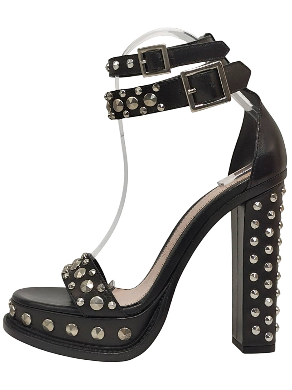 | メモ | アイテム:スタッズ付きヒールサンダル(プラットフォームあり) 素材:レザー・メタル ヒール:約13㎝・ストーム(前):3cm カラー:ブラック・シルバー ※金具シルバー |