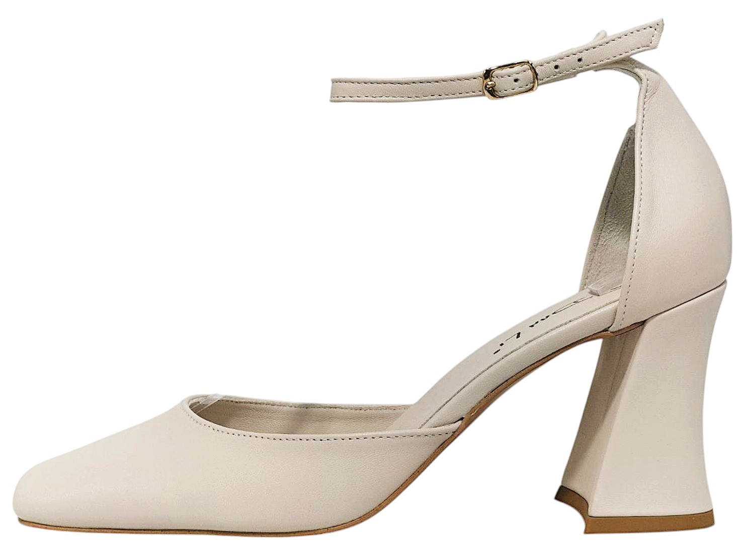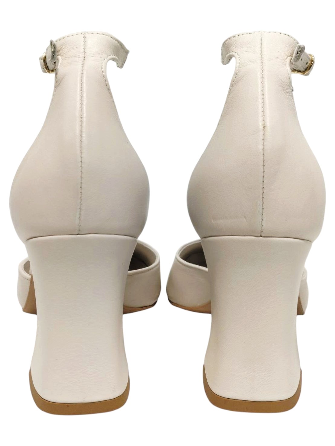アイテ:アンクルベルト付きストラップシューズ 素材:レザー ヒール:約8.5㎝ カラー:アイボリー系 ※金具ゴールド