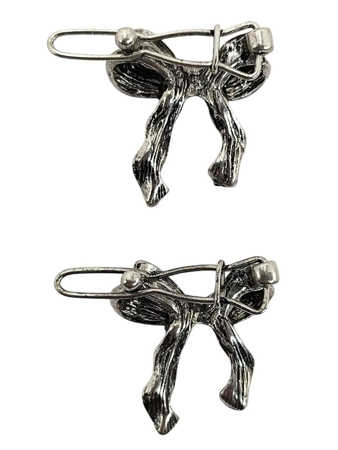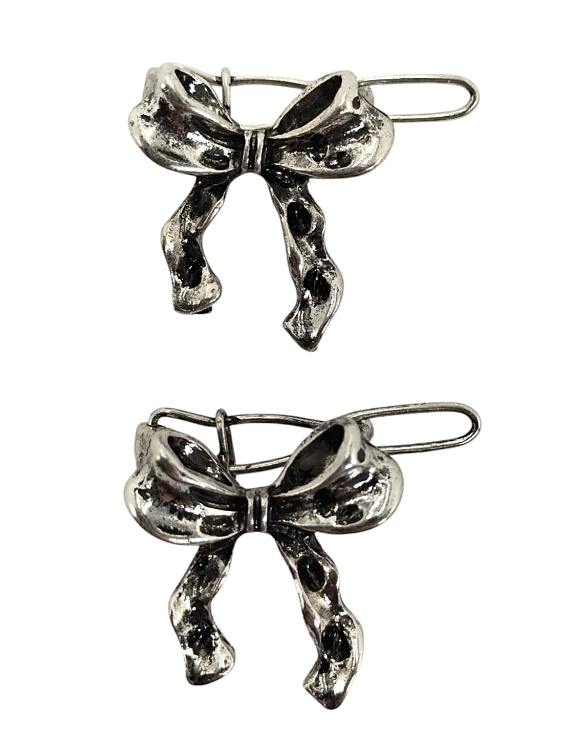 | メモ | アイテム:リボンヘアピン・ローマピン(2点セット) 素材:メタル カラー:アンティークシルバー 全長:約2.2㎝(装飾部分) |
