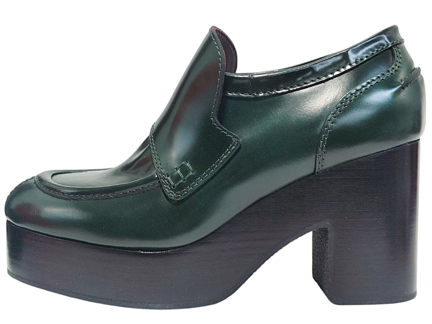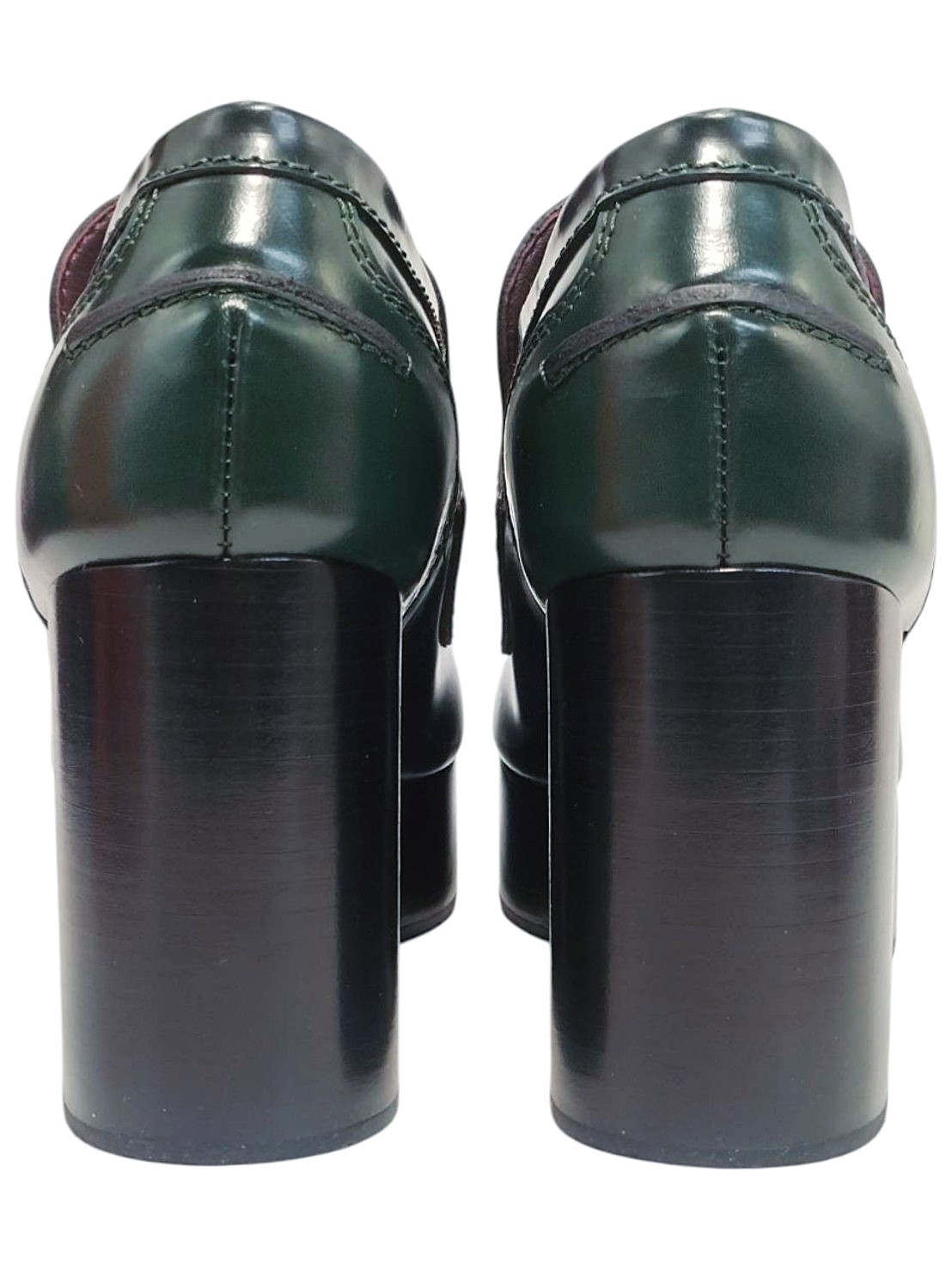 | メモ | アイテム:ローファーシューズ(プラットフォーム付き) ヒール:約8.7㎝ ストーム(前):約3.2cm 素材:レザー カラー:ダークグリーン |