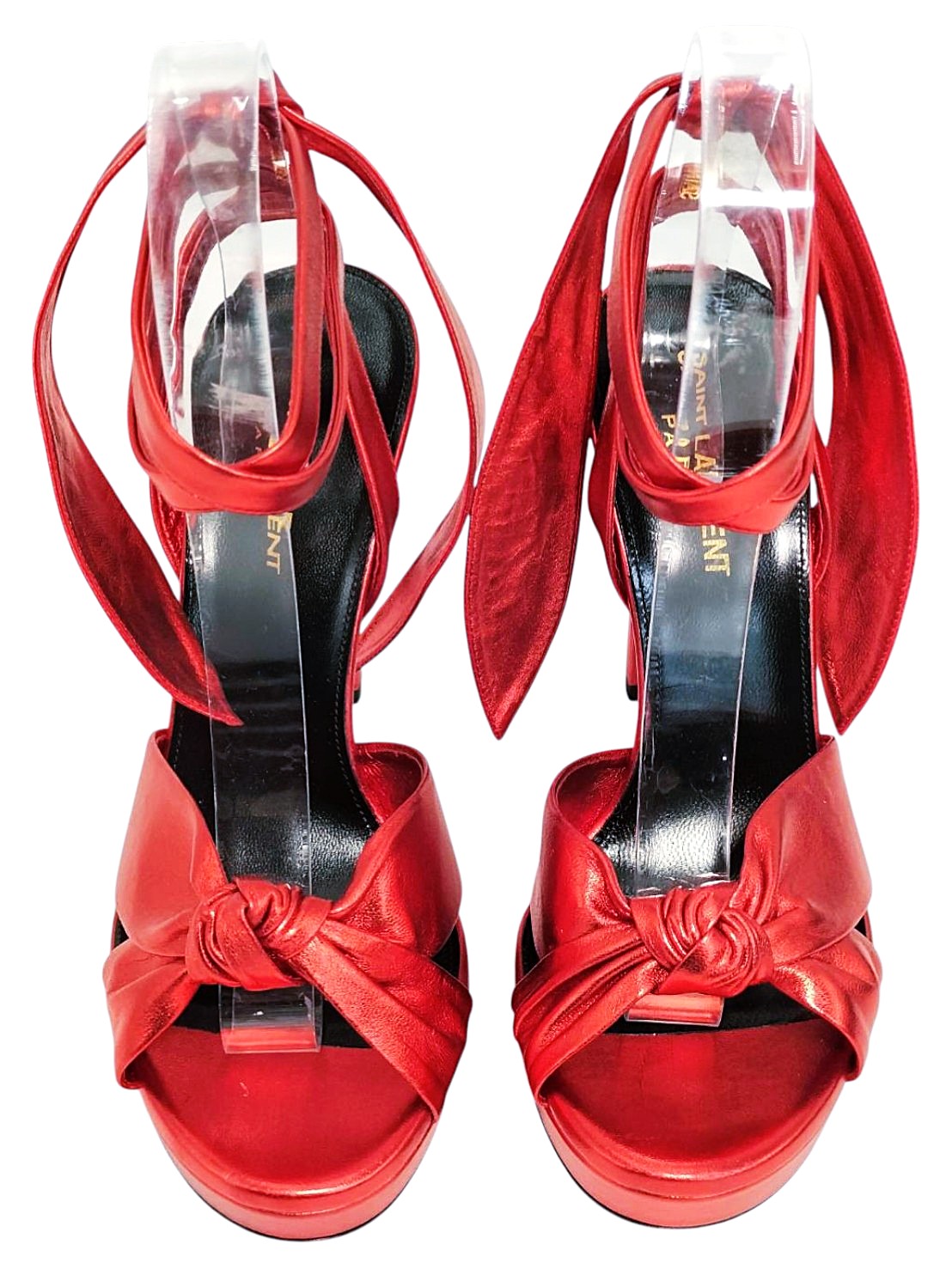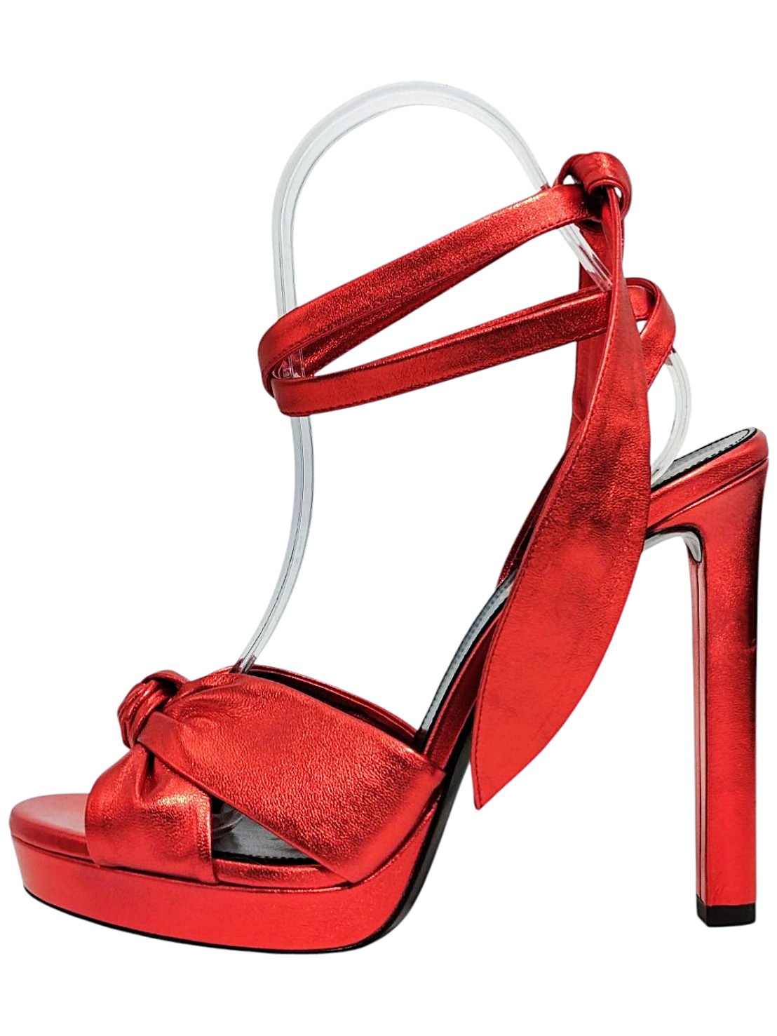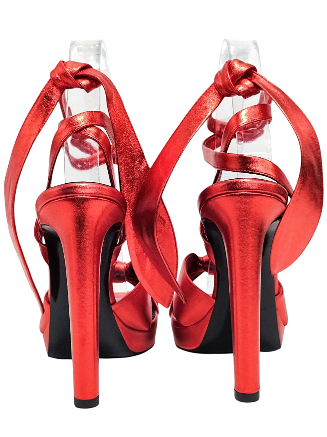 | メモ | アイテム:レースアップサンダル(プラットフォームあり) 素材:箔レザー ヒール:約12cm ストーム(前):2cm カラー:メタリックレッド |