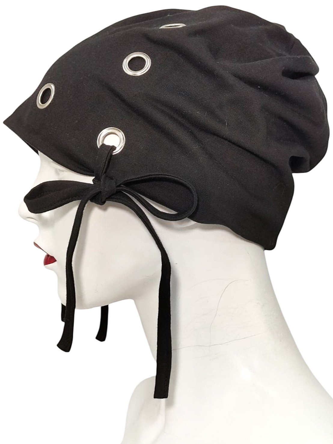 アイテム:ハトメリボンビーニー カラー:ブラック・シルバー 素材:コットン・メタル