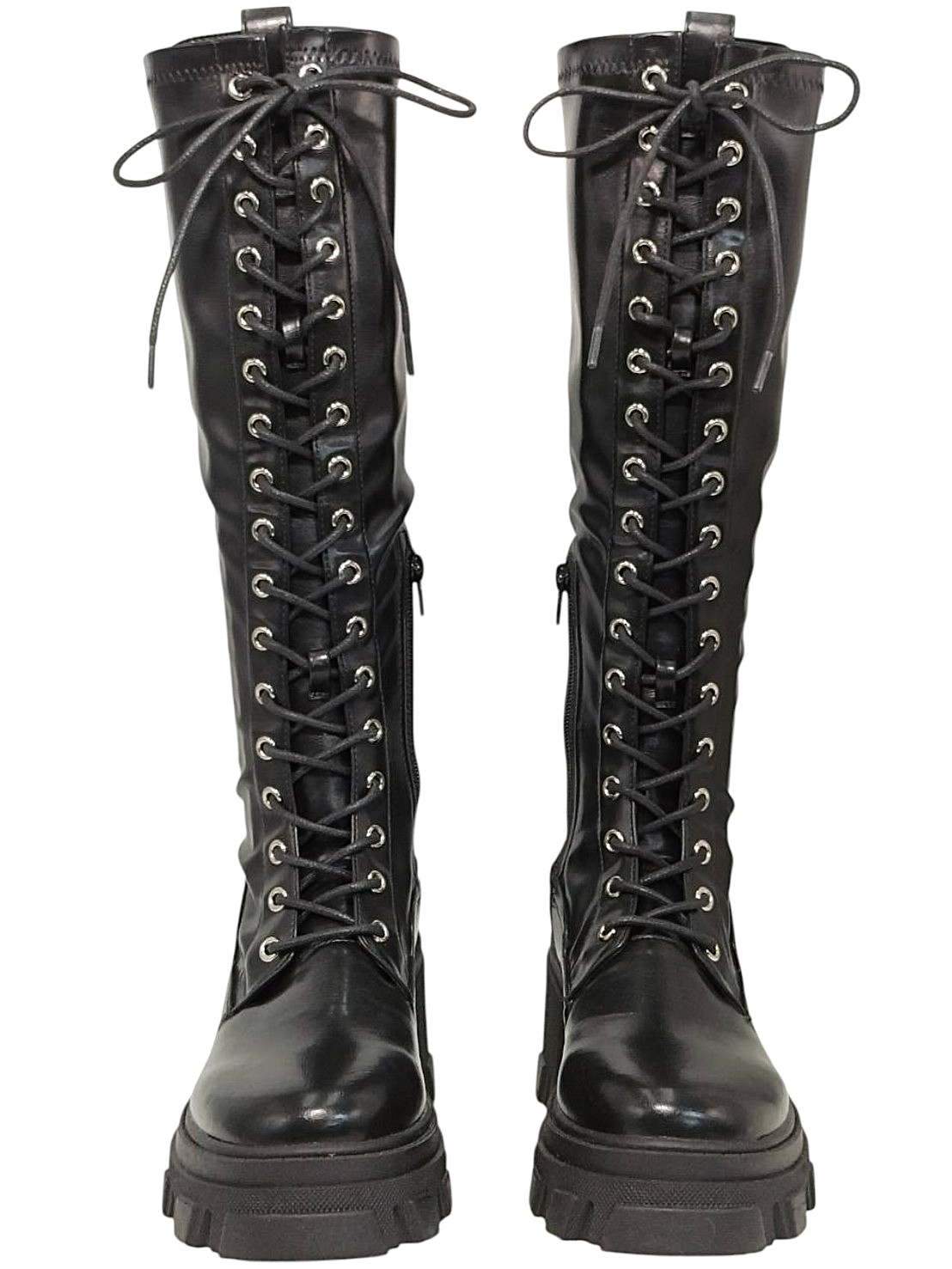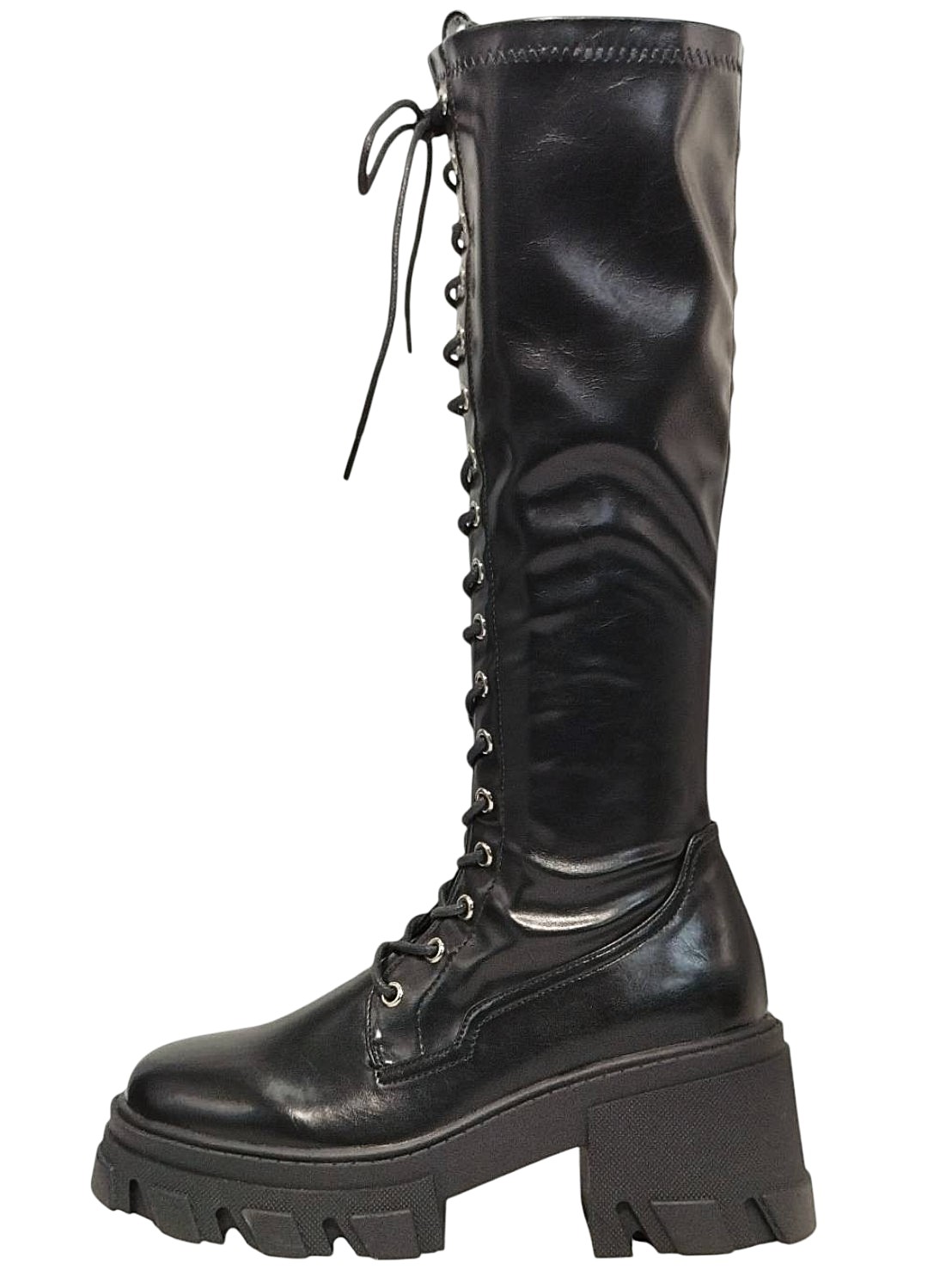| メモ | アイテム:レースアップブーツ(プラットフォームあり) 素材:フェイクレザー サイズ:L(24~24.5cm) ヒール:約8.3㎝ ストーム(前):約4cm 全長:約46㎝ カラー:ブラック |
