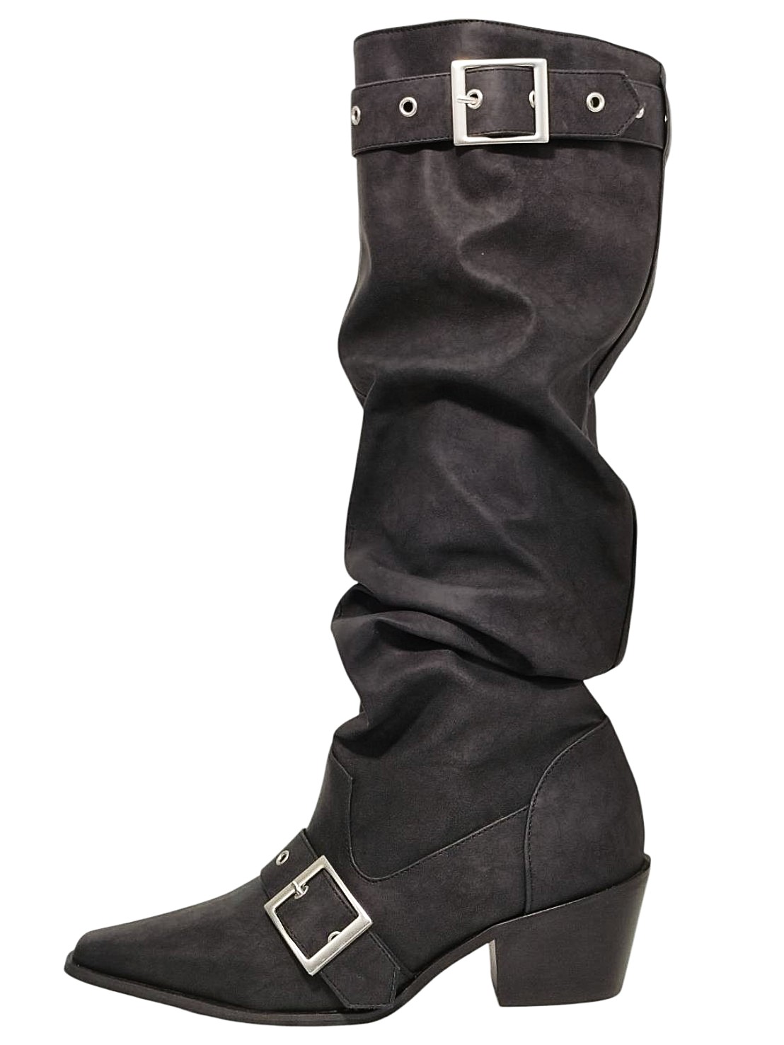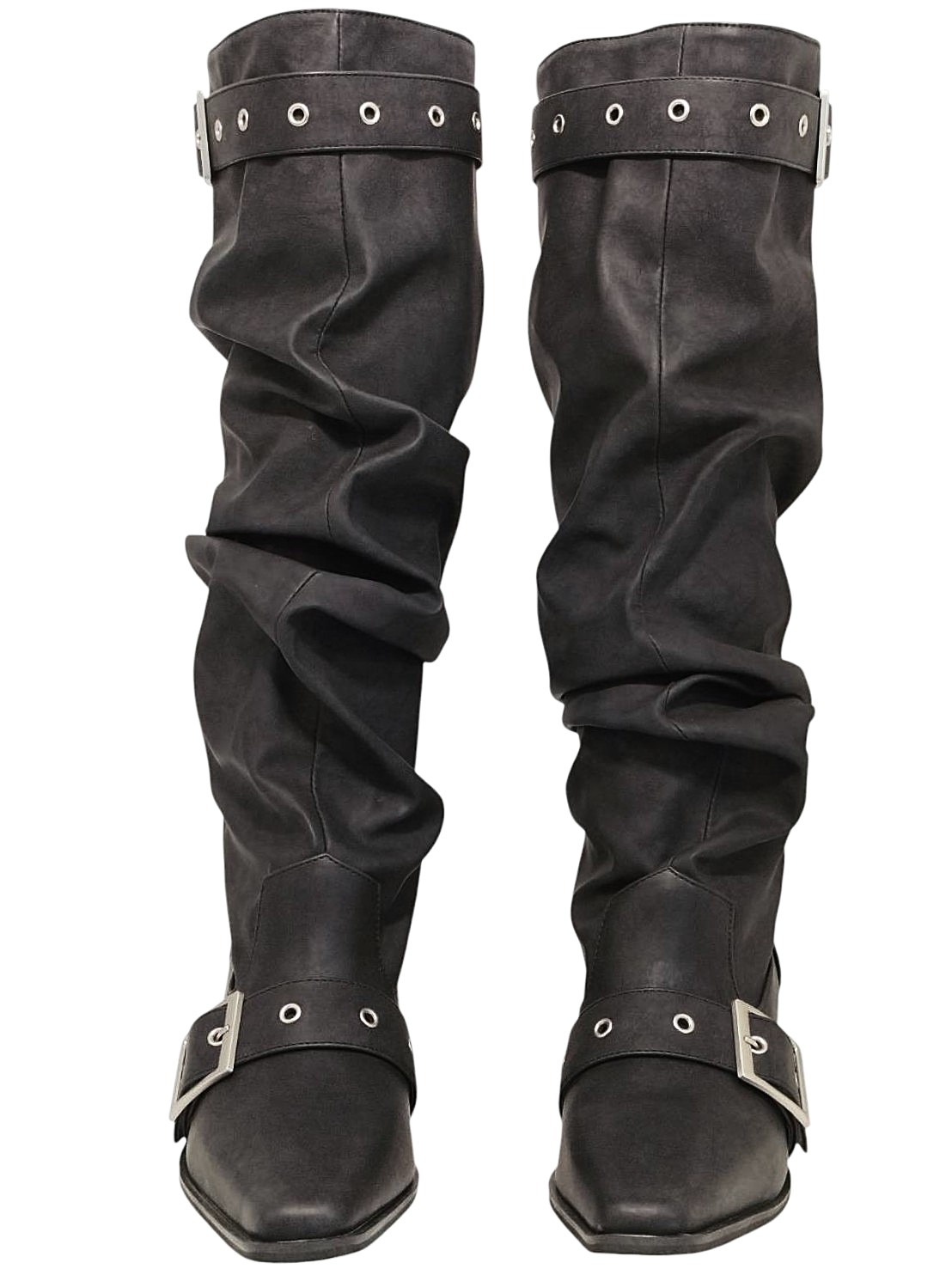 アイテム:ルーズウエスタンベルトブーツ 素材:フェイクレザー サイズ:L(24~24.5cm) ヒール:約6.5㎝ 全長:約45㎝ カラー:マットブラック