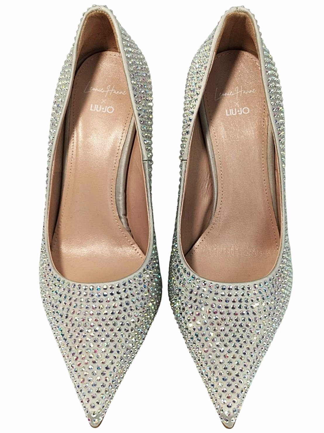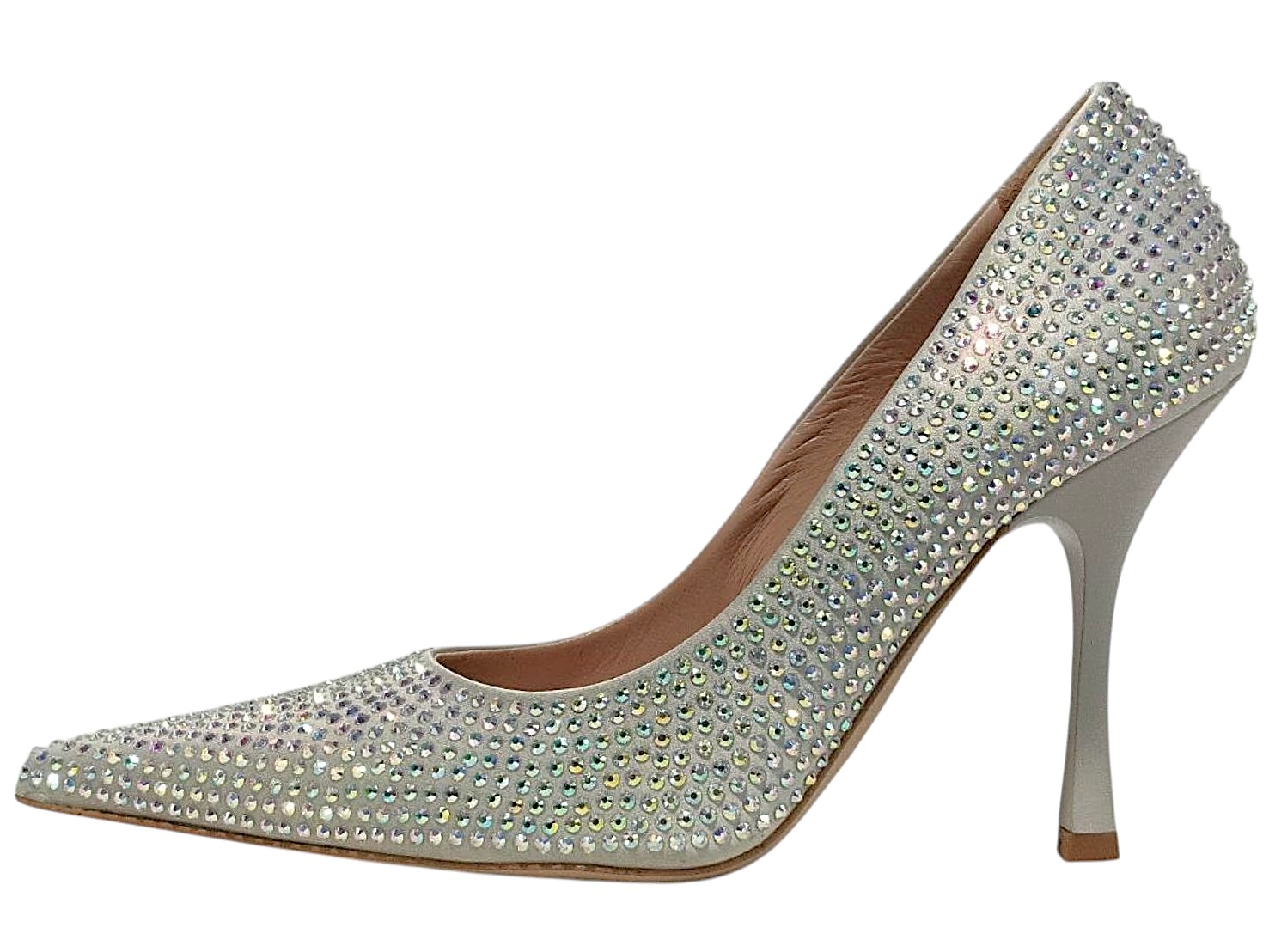 アイテム:オーロラビジュー付きヒールパンプス 素材:サテン・ガラス ヒール:約10cm カラー:シルバー・オーロラ