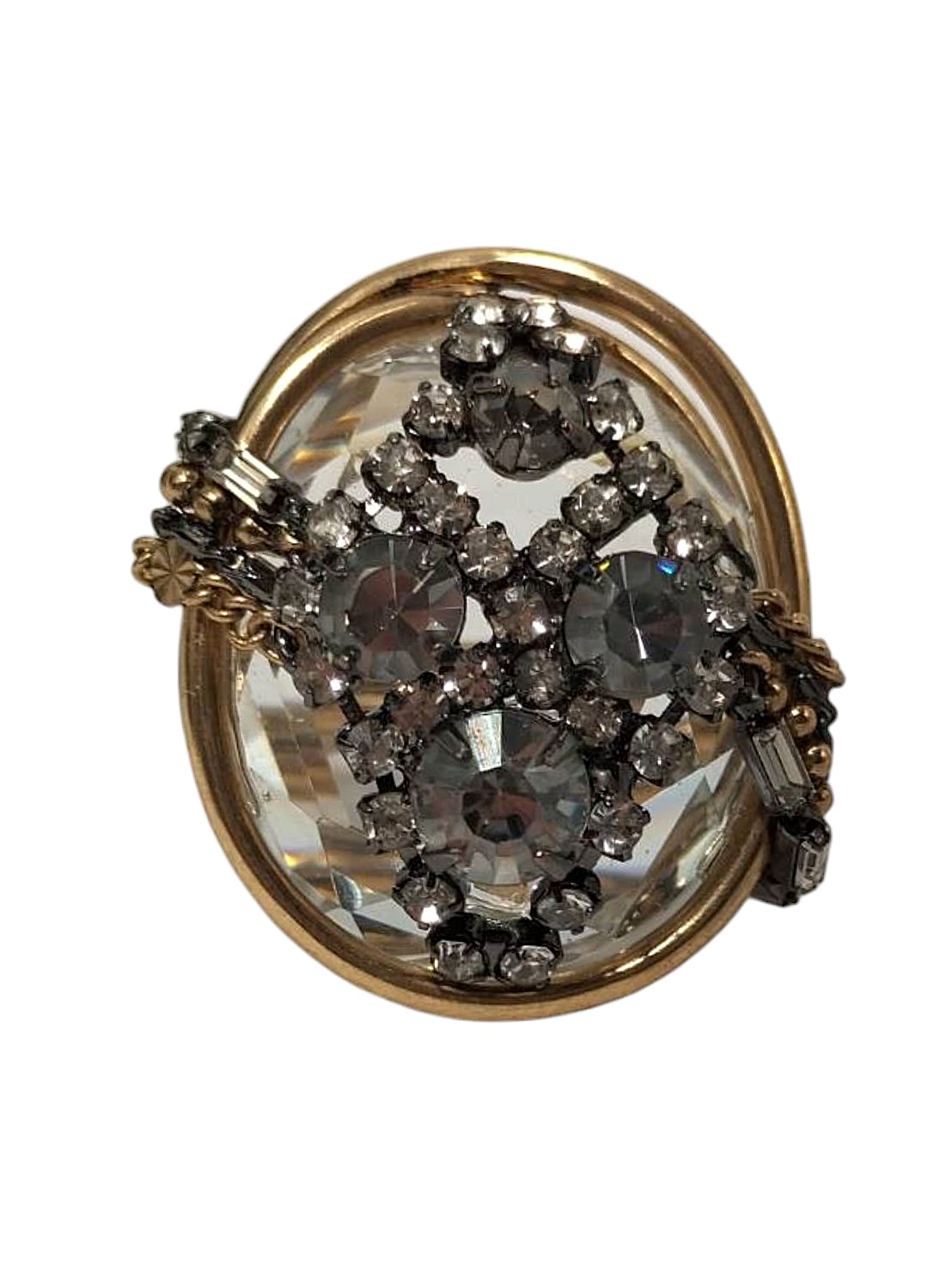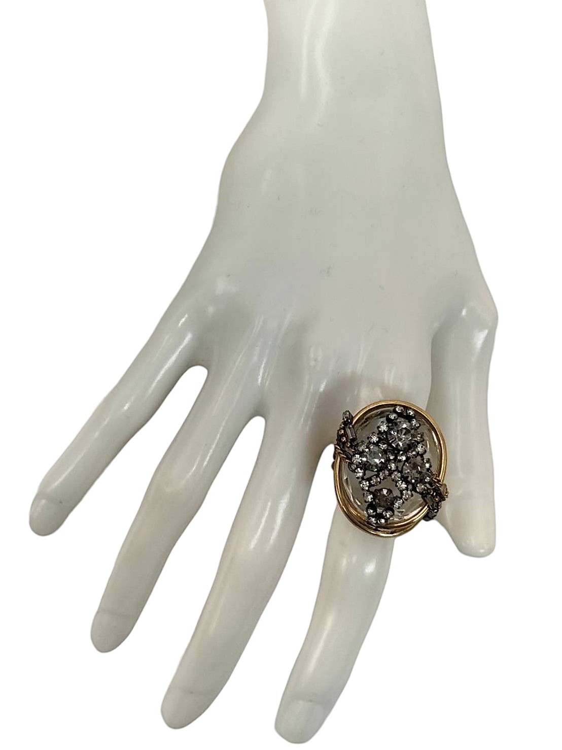 アイテム:ビッグクリスタルビジューリング サイズ:55(15号・17.5 mm・US7 1/4・UKL - O - P) 全長:約2.8㎝ 素材:メタル・ガラス カラー:アンティークゴールド・グレージュ・ガンメタ