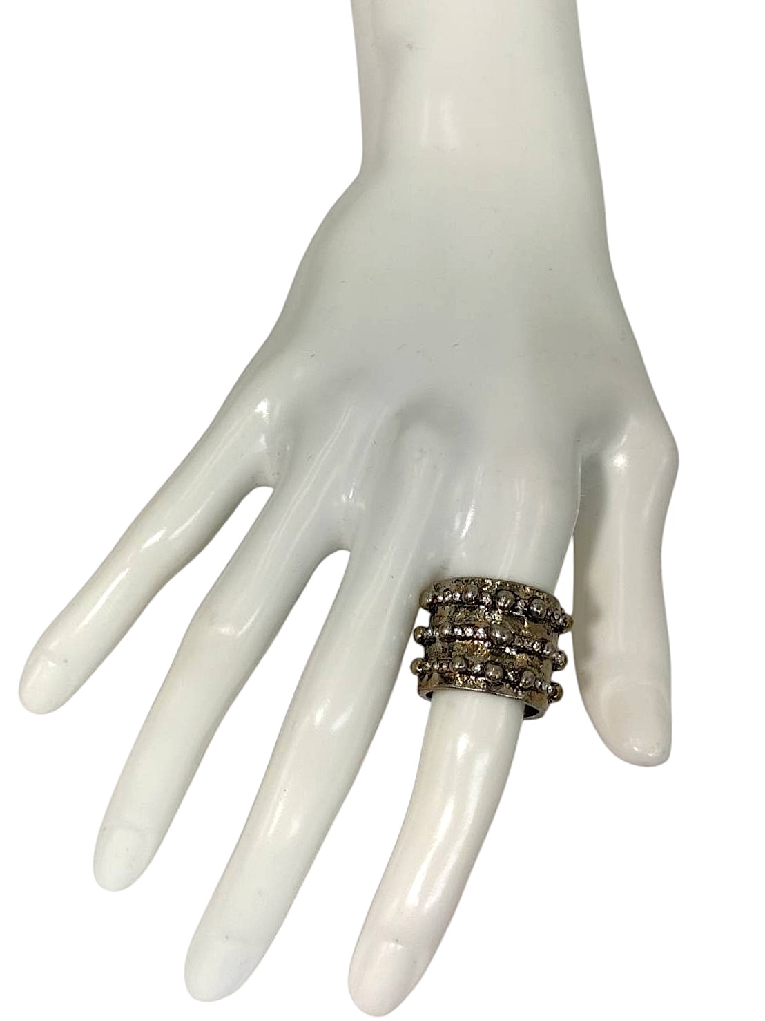 アイテム:ロングリング サイズ:56(16号・18 mm・US77 1/2・UKL - P) 全長:約1.8㎝ 素材:メタル・ガラス カラー:アンティークシルバー・アンティークゴールド