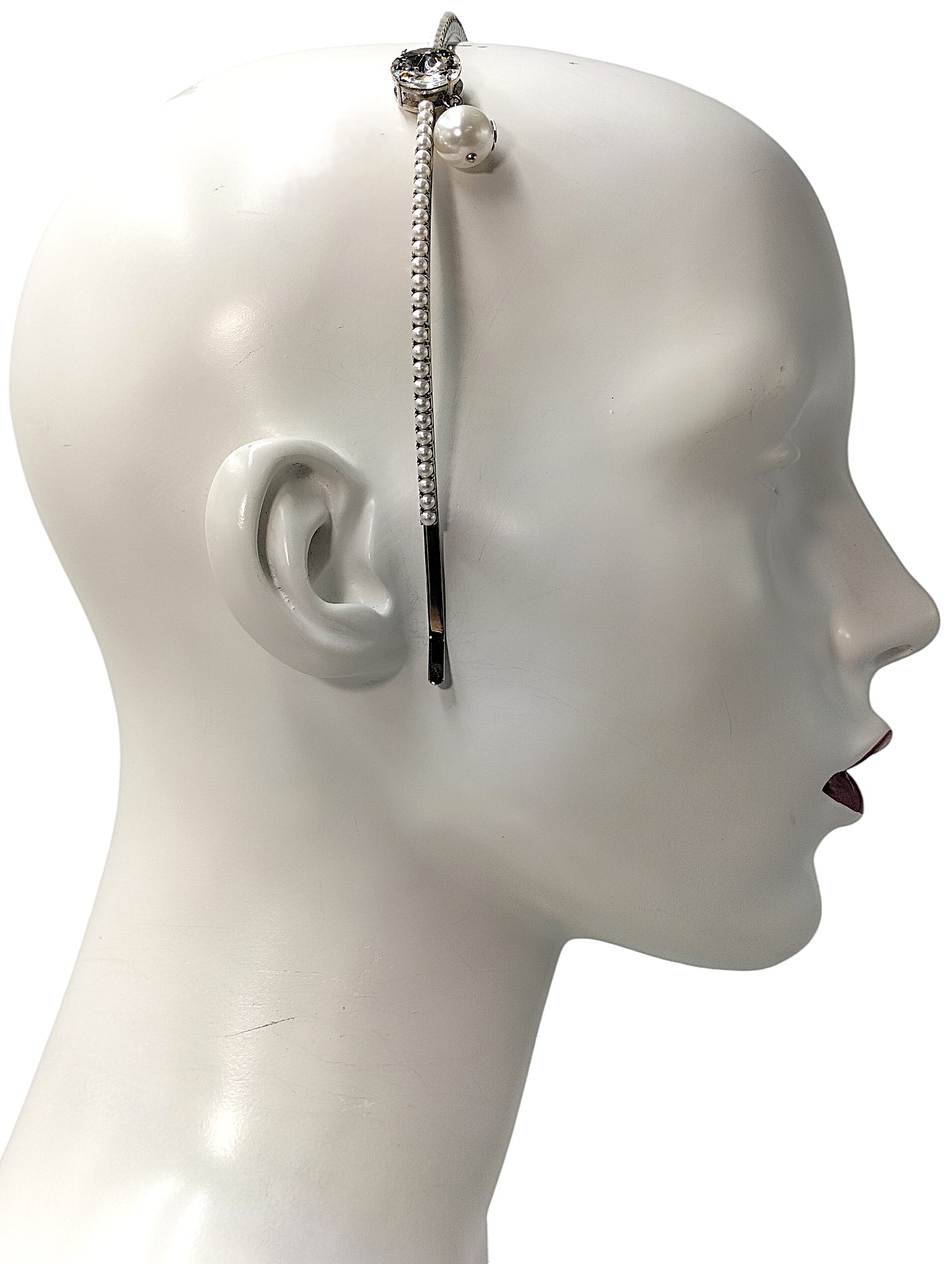 アイテム:パールフリンジ付きビジューチューシャ 素材:メタル・樹脂パール・ガラス カラー:バール・シルバー