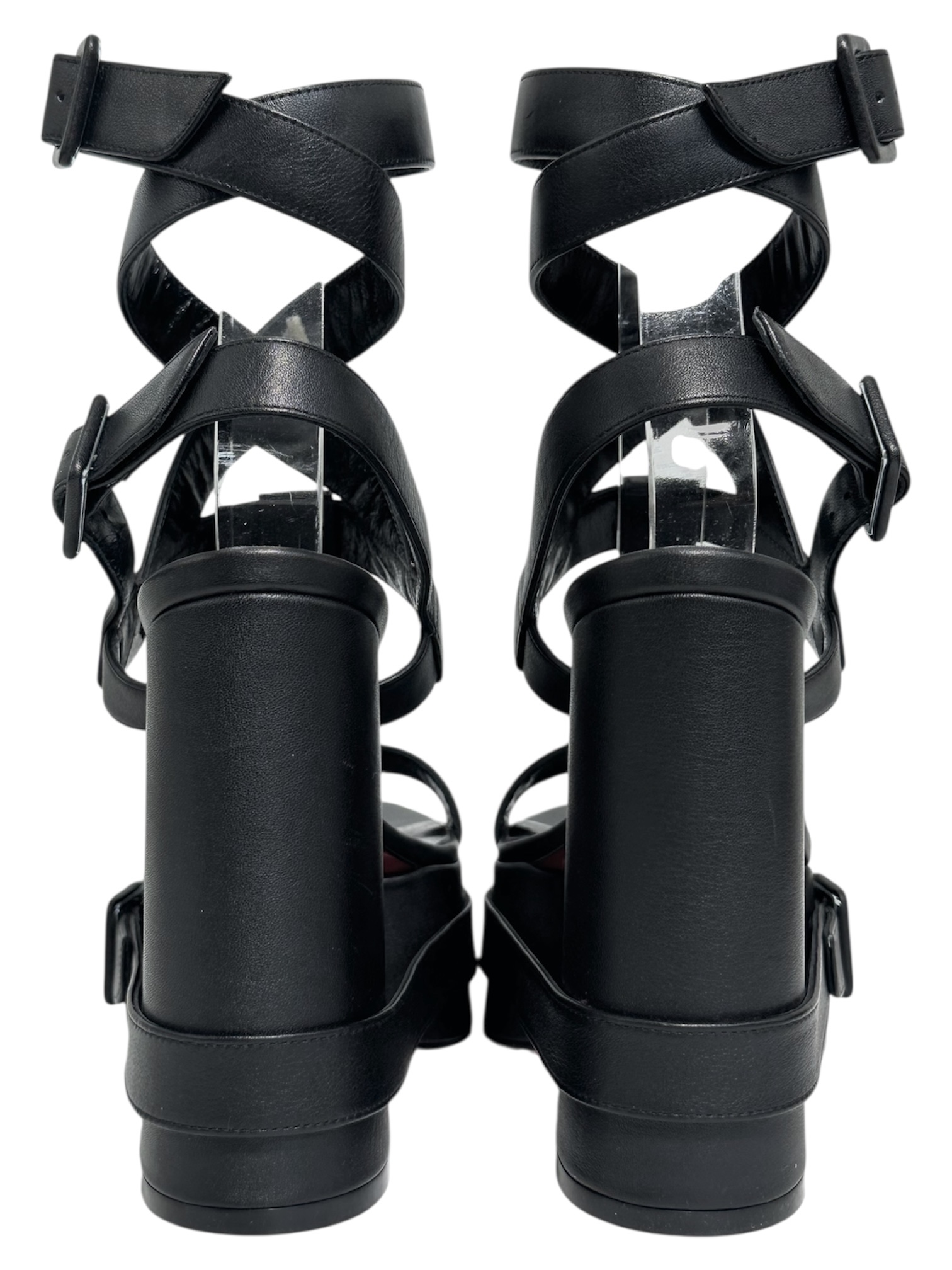 メモ | アイテム:ベルト付きプラットフォームサンダル 素材:レザー ヒール:約12.5㎝ ストーム(前):約5cm カラー:ブラック |