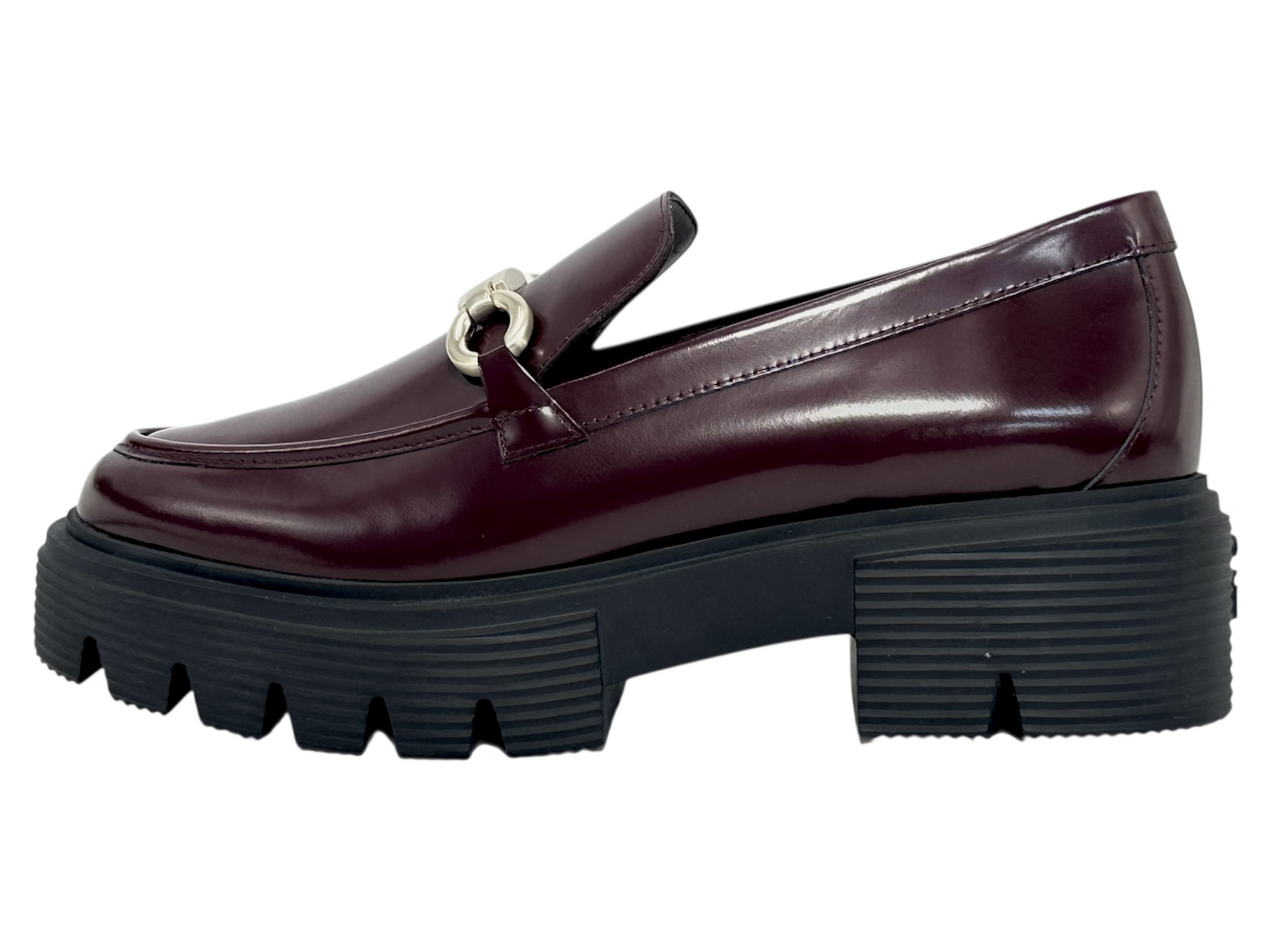 メモ | アイテム:プラットフォームヒールローファー 素材:レザー ヒール:約5㎝ ストーム(前):約4.5cm カラー:ボルドー ※金具ゴールド |