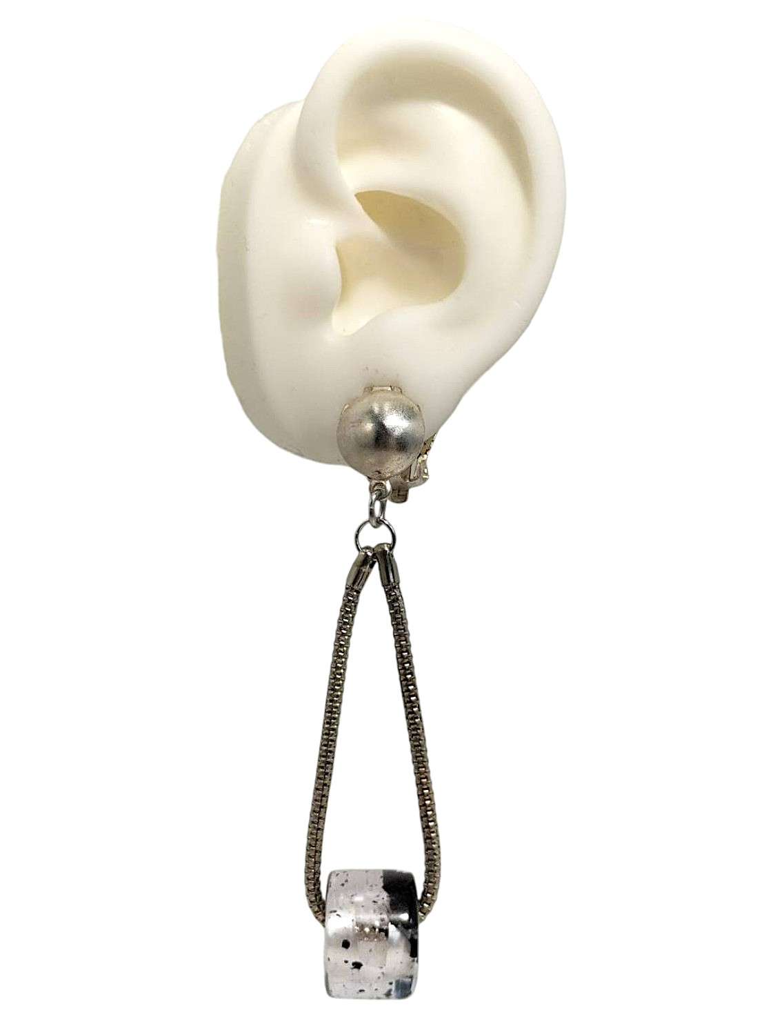 アイテム:樹脂パーツ付きデザインイヤリング 素材:メタル・樹脂パーツ カラー:シルバー・ブラック・クリア