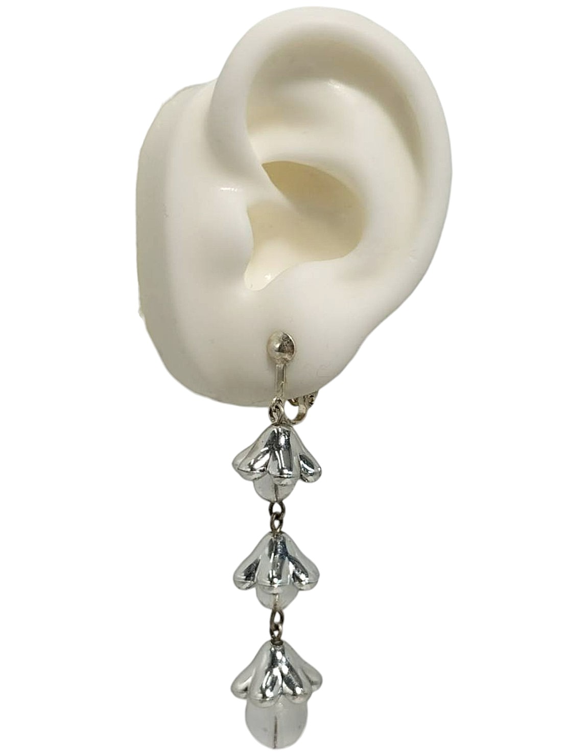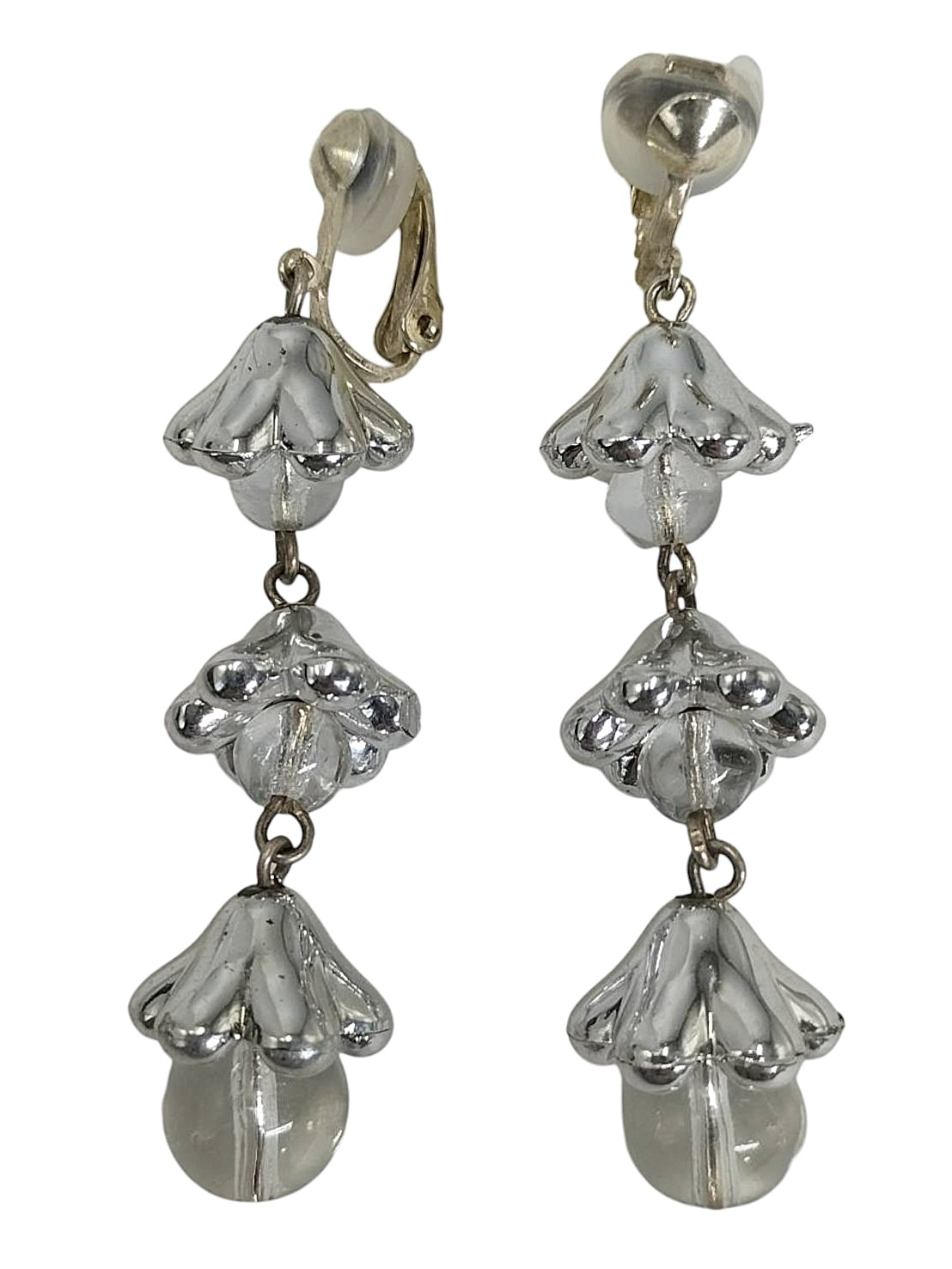 アイテム:メタリックフラワーデザインイヤリング 素材:メタル・樹脂パーツ カラー:シルバー・クリア 全長:約5.5